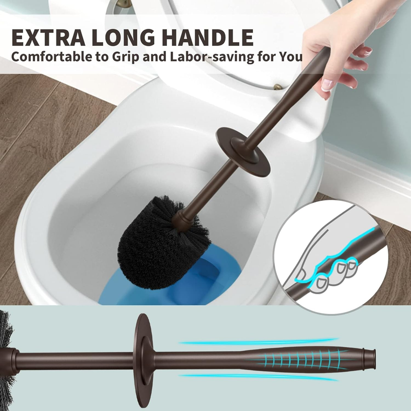 SLEEK MODERN DESIGN: Decorative but functional, our toilet brush is a bathroom toilet bowl brush unlike any other toilet cleaning brush. Flaunting a fancy vintage-inspired design, it serves as an elegant decoration. What's more, the holder keeps the brush head out of view! And you won't feel embarrassed when customers using your toilet.