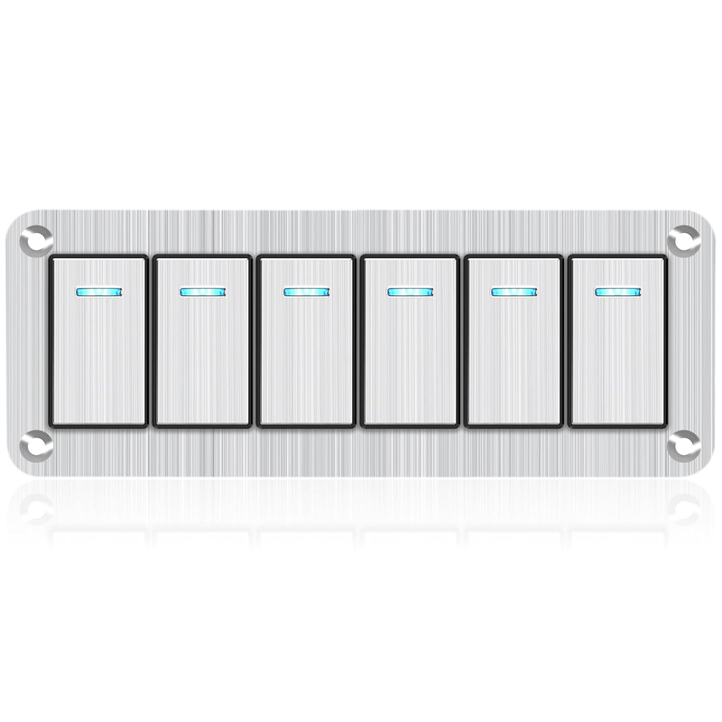 Waterproof Toggle Switch Panel 6 Gang Aluminum Rocker Switch Panel 12V/24V On-O