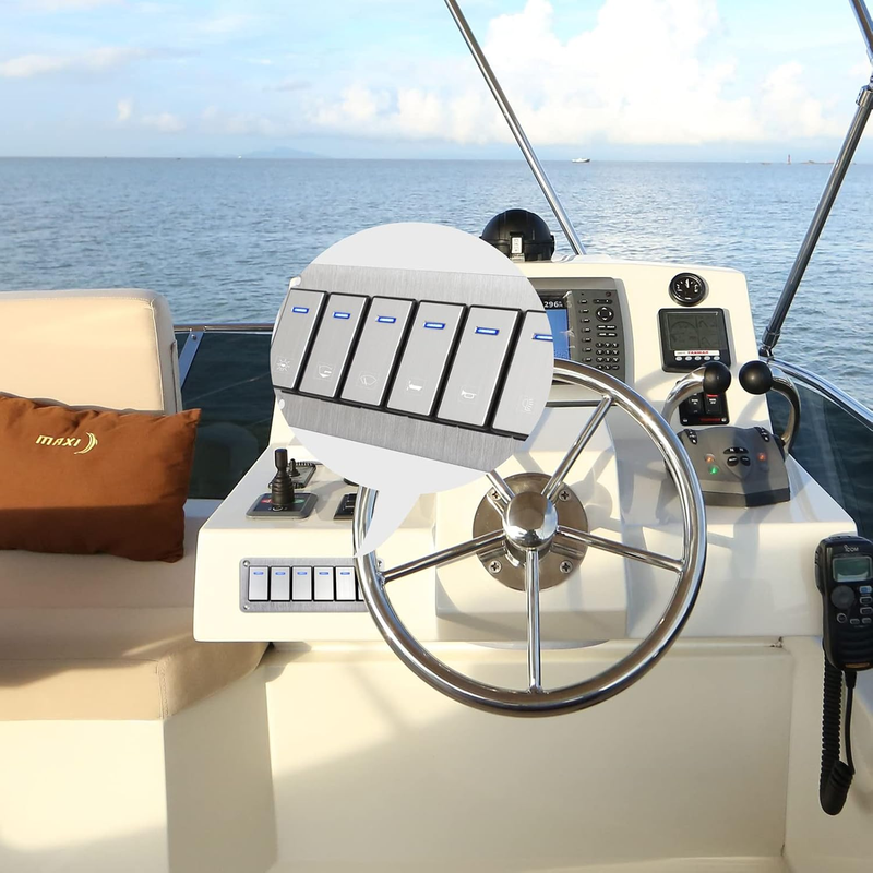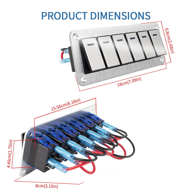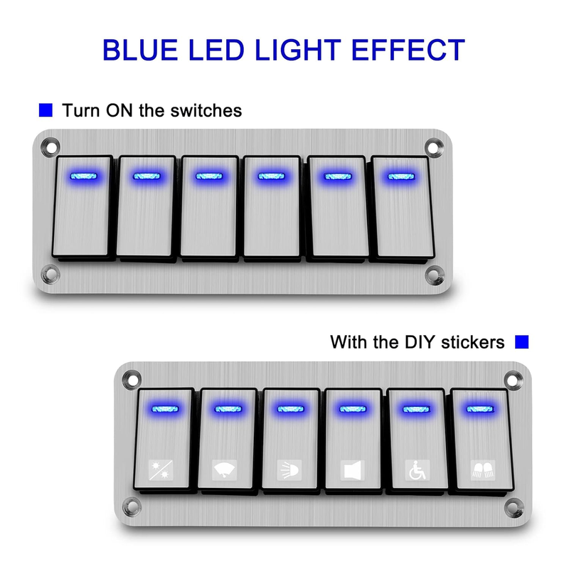 [Waterproof Aluminum Switches Panel]: The item is made of waterproof switches and aluminum panel, which is sturdier and more durable than plastic panel. The item has a unique technology in the waterproof structure. The ultra-thin silicone film prevents water from entering the inside of the switch panel, ensuring the inner cavity is dry, avoiding short circuits, and making the boat rocker switches safer during use.