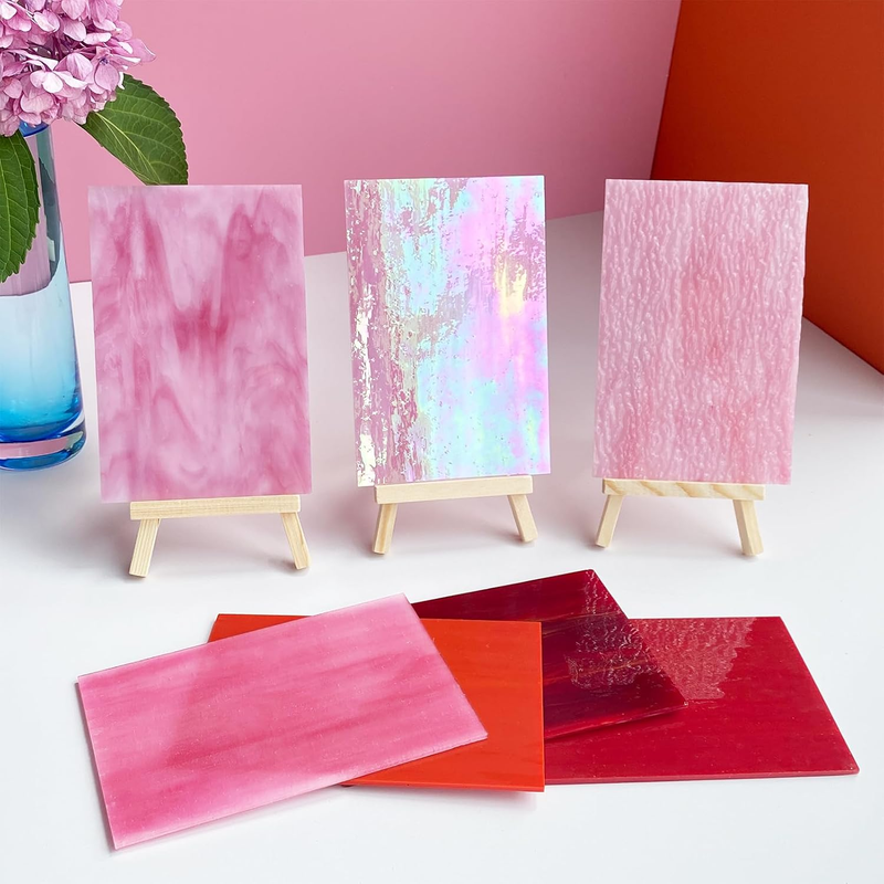 12 Sheets Mixed Red Pink Stained Glass Sheets, 4 X 6 Inch Stained Glass Supplie