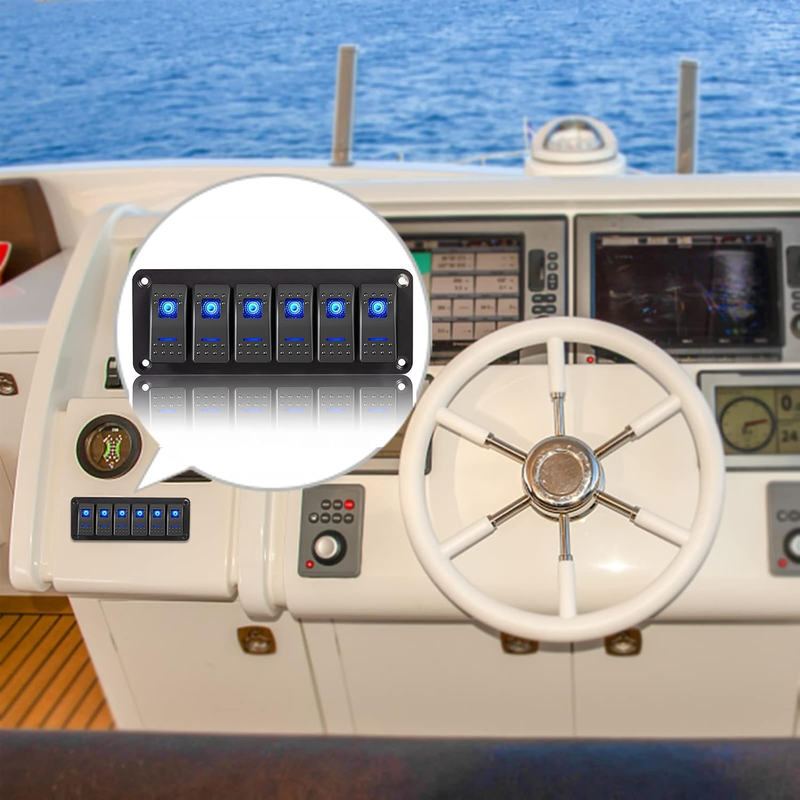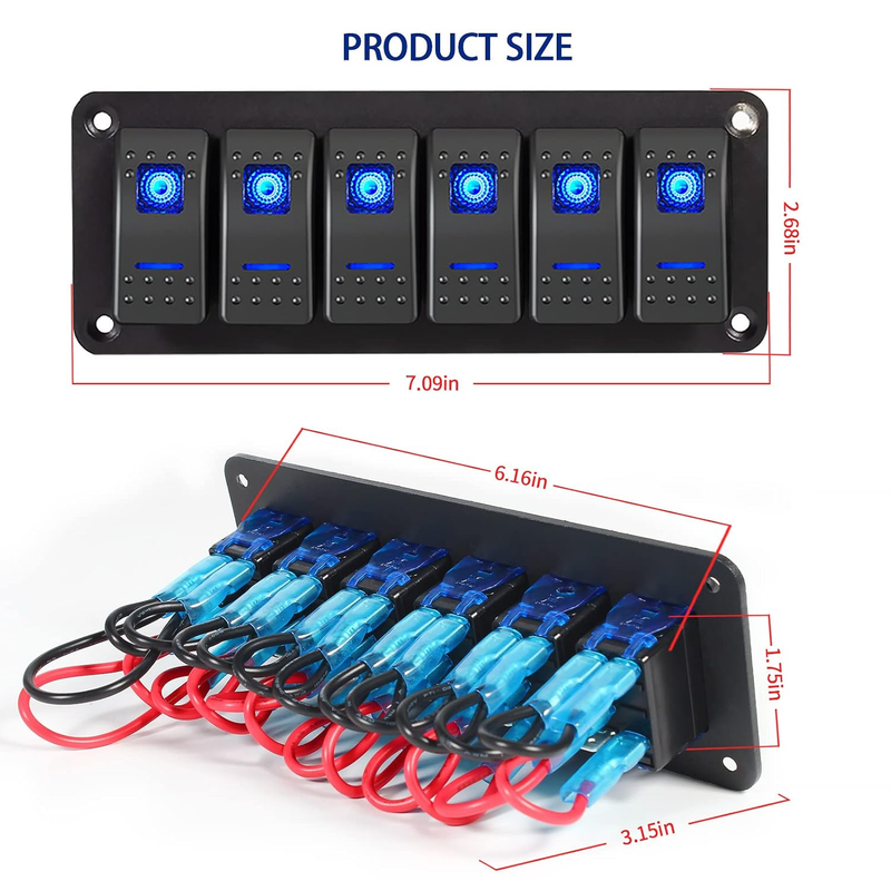 Toggle Switch Panel 6 Gang Waterproof Aluminum Switch,12V/24V Rocker Switch Pan