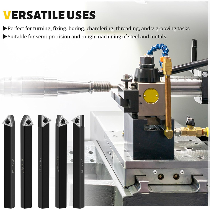 Perfect for turning, fixing, boring, chamfering, threading, and v-grooving tasks