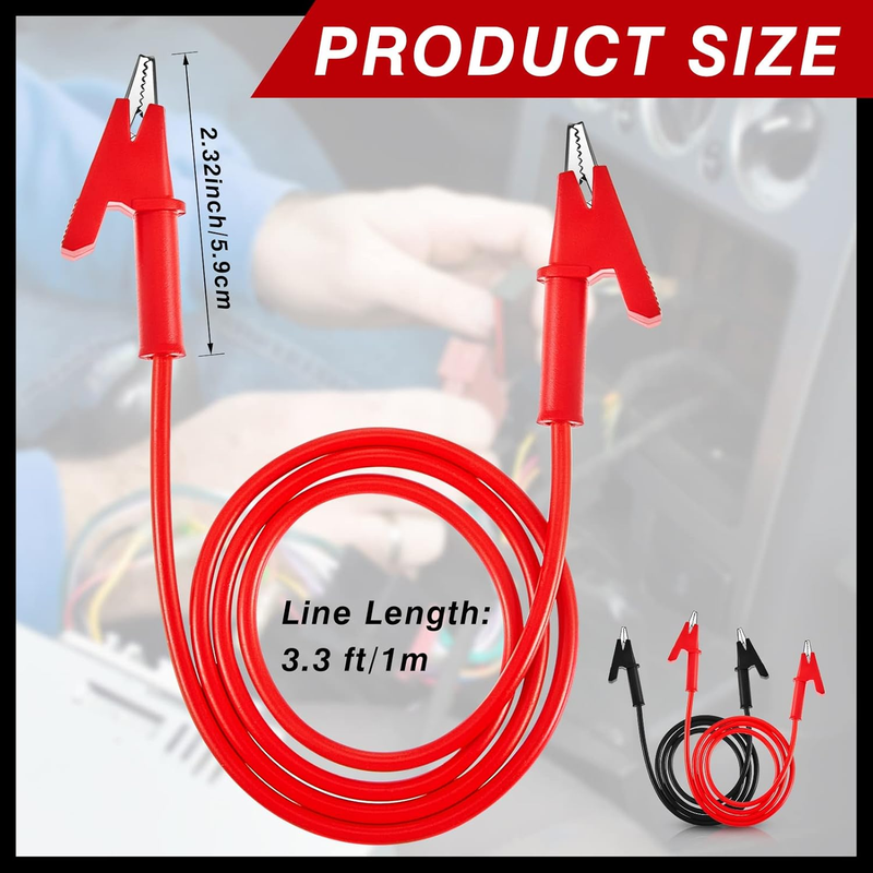Package Content: you will receive a total of 4 pieces of alligator clips with wires in 2 colors, namely black and red, sufficient quantity to meet your daily use and replacements, 2 color choices for easy classification
