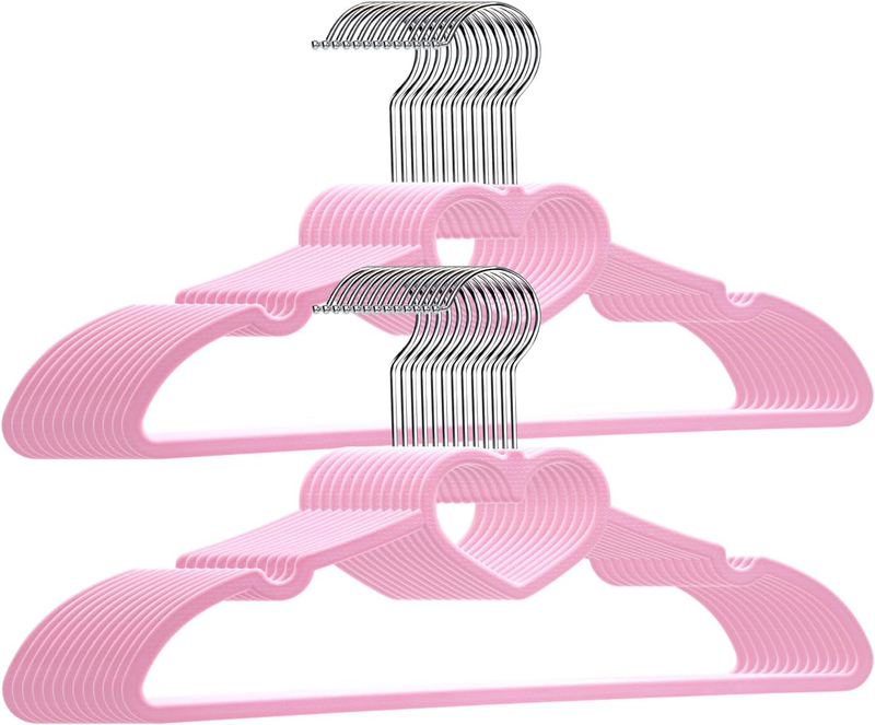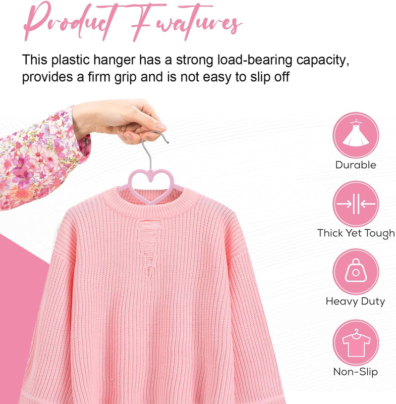 Plastic Hangers 20 Pack, Pink Hangers Ultra Thin Space Saving-Heart Shap