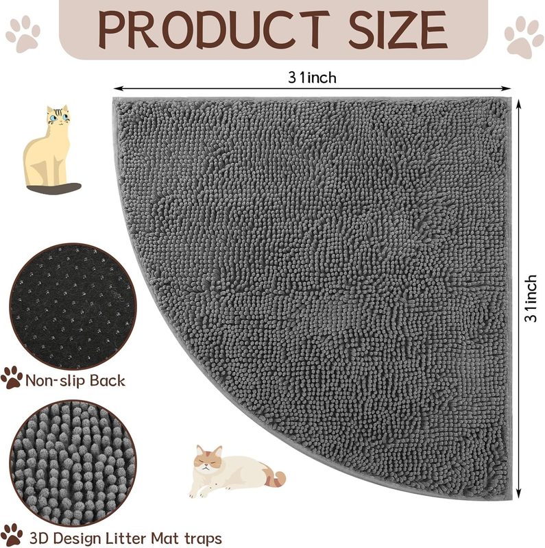 Thoughtful Quarter Circle Design: this non slip cat litter mat features a quarter circle shape, tailored to fit snugly in the corner of a room; This design not only saves the use of space, but it also places the mat in a strategic location, making it an unobtrusive addition to your home while maintaining its function