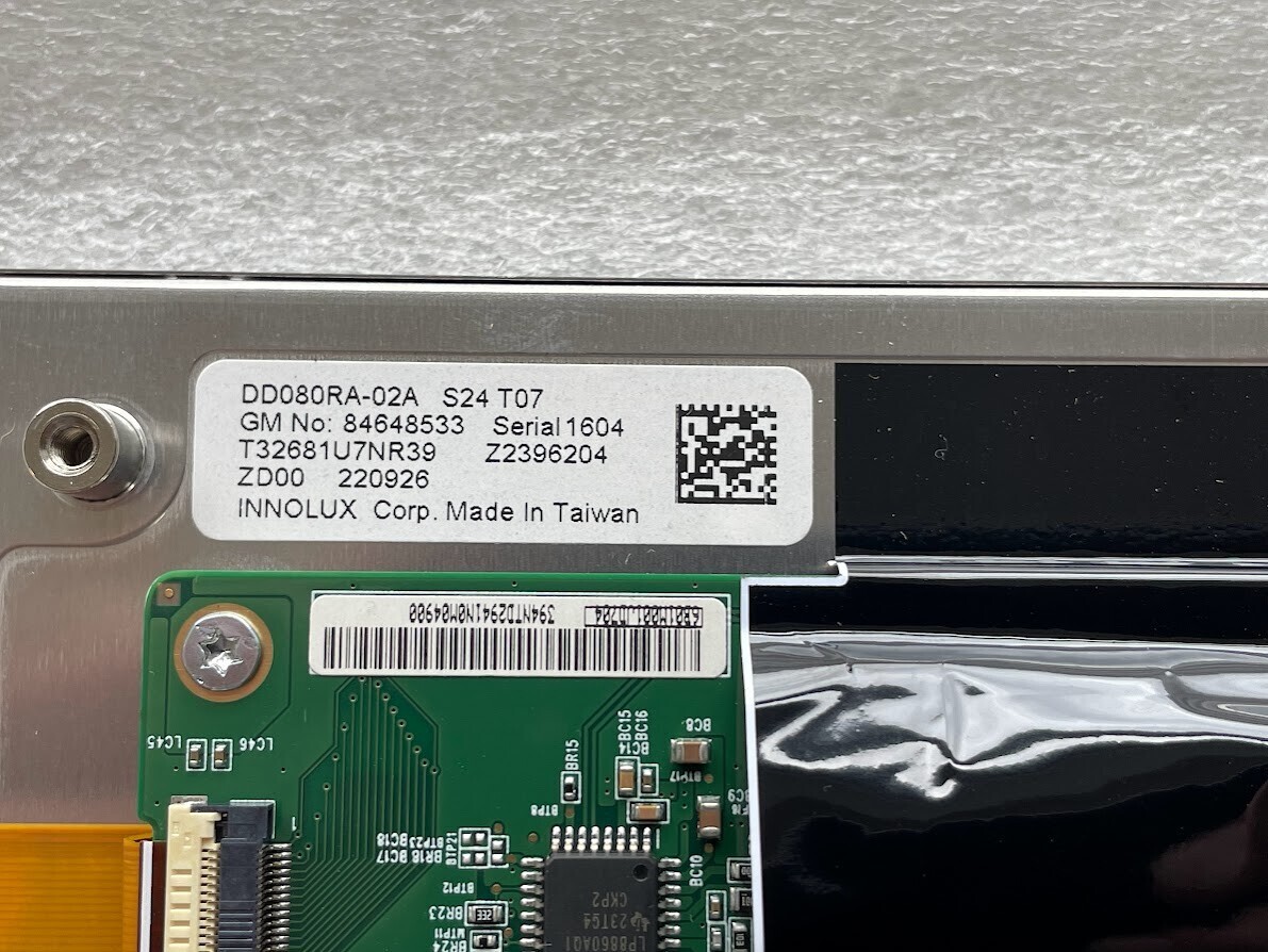 This is a factory original 8 inch GM driver information touchscreen. It is from a New Old Stock assembly line leftover dash trim-piece that was never installed. It is in excellent condition because it has protective plastic over it. A 6 month warranty is included, for your peace of mind.