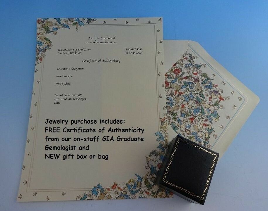 All of our jewelry is guaranteed authentic by our Graduate Gemologist of the Gemological Institute of America (GIA).
