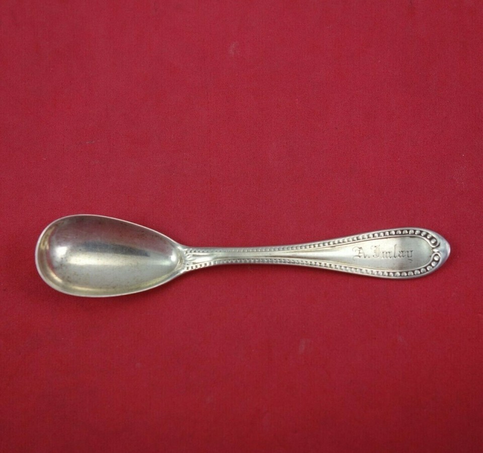 Coin silver Egg Spoon 4 3/8" in the pattern Bead by John Polhamus. It is monogrammed (monos vary) and is in excellent condition.
