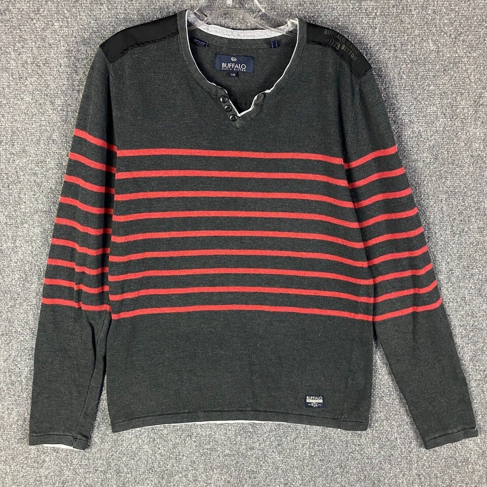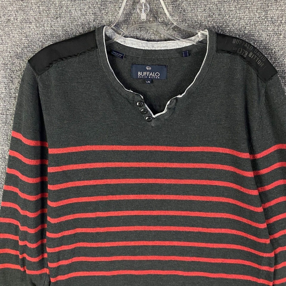 Buffalo David Bitton Sweater Men's Large Striped Pullover Cotton Blend L