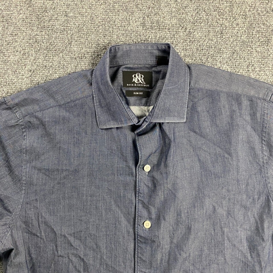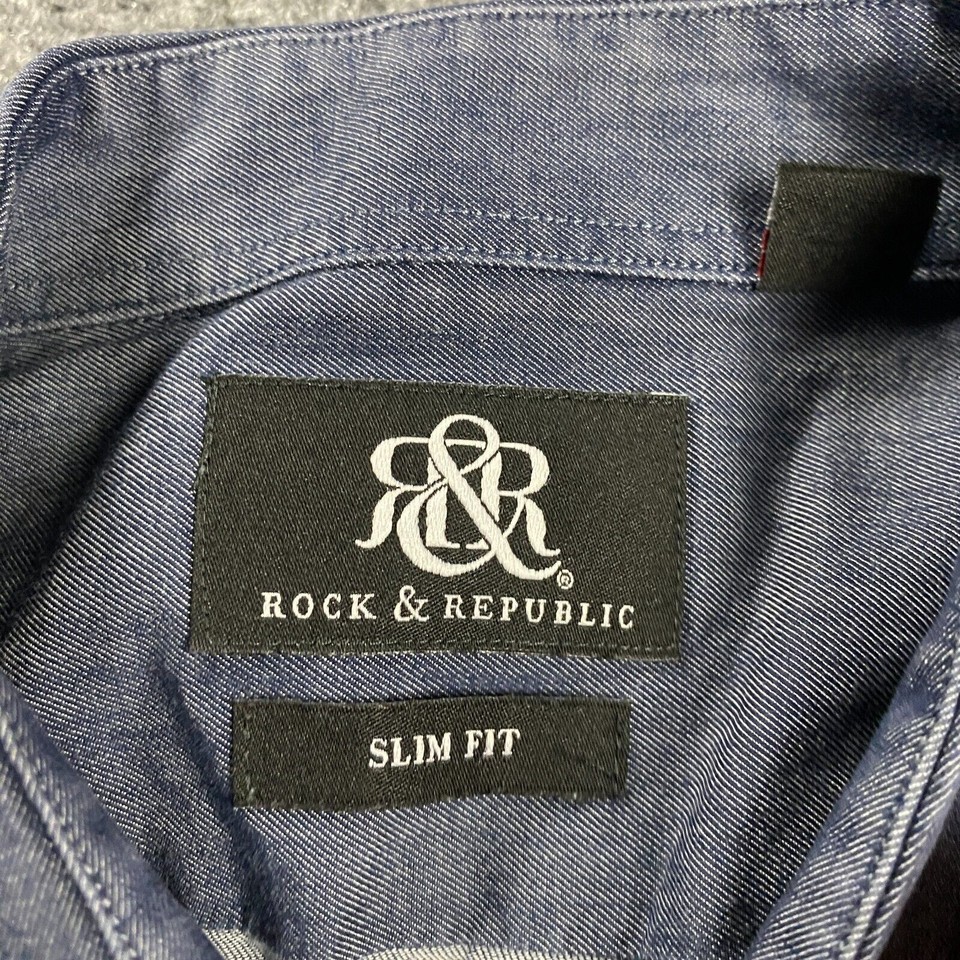 Rock & Republic Shirt Men's 15.5 Blue Slim Fit 34/35 Button Up 100% Cotton