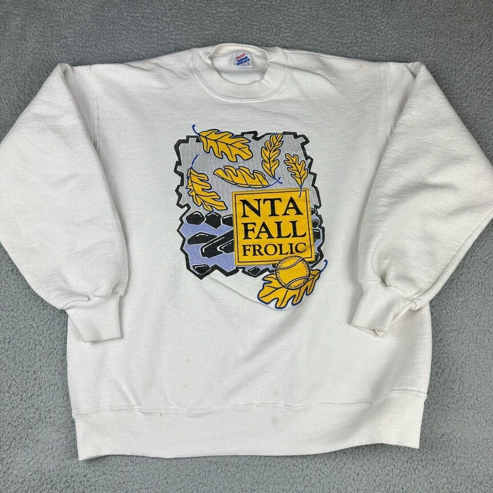 Vintage NTA FALL FROLIC White Sweatshirt Adult Size XL Sweater Made In Usa