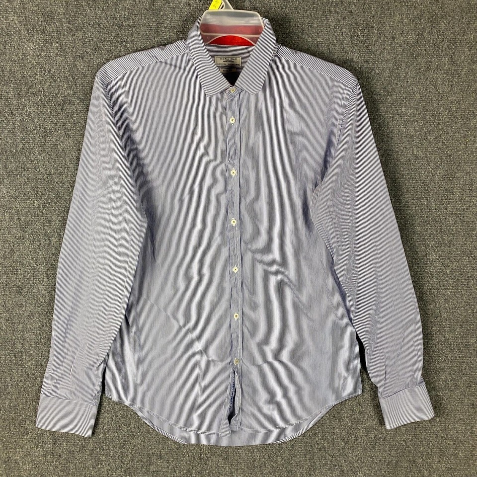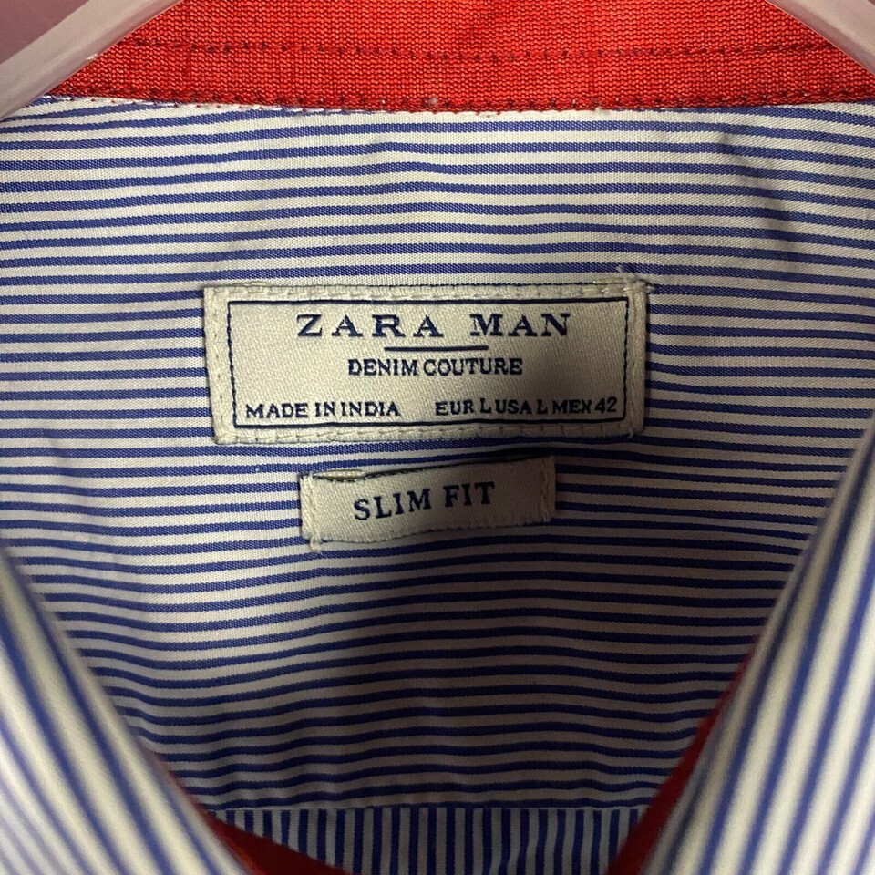 Zara Button Up Shirt Men's Large Long Sleeve Striped 100% Cotton Adults L