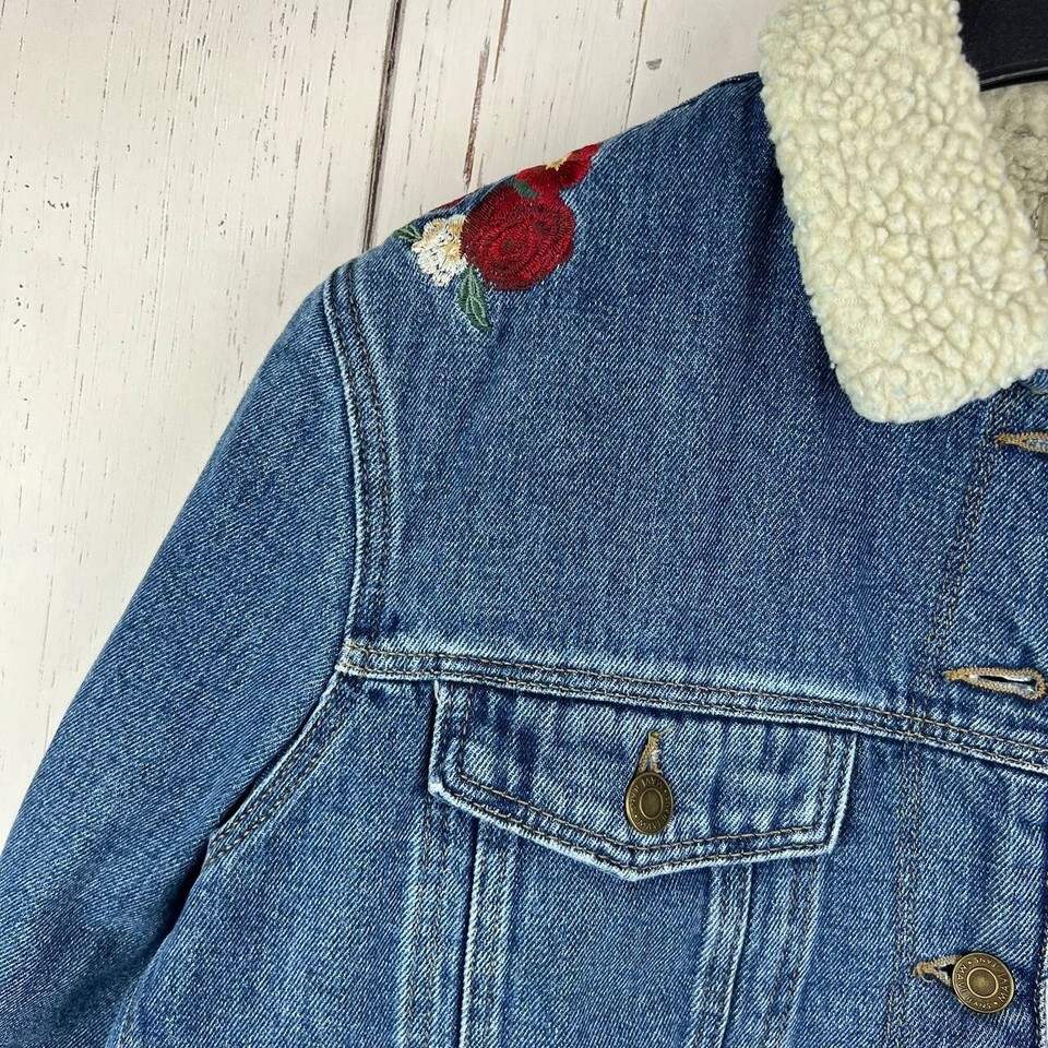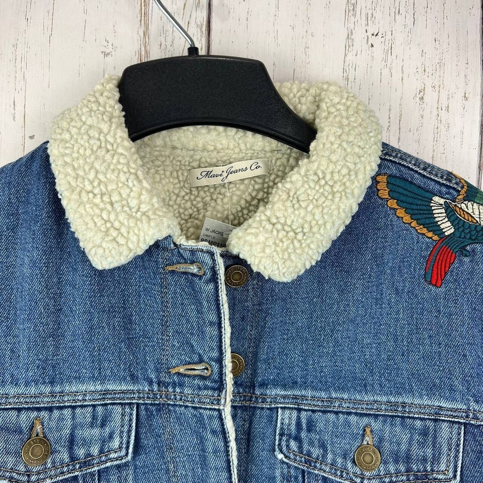 Mavi Small Cropped Fit Stretchable Faux Fur Sherpa Denim Jeans Jacket Women New