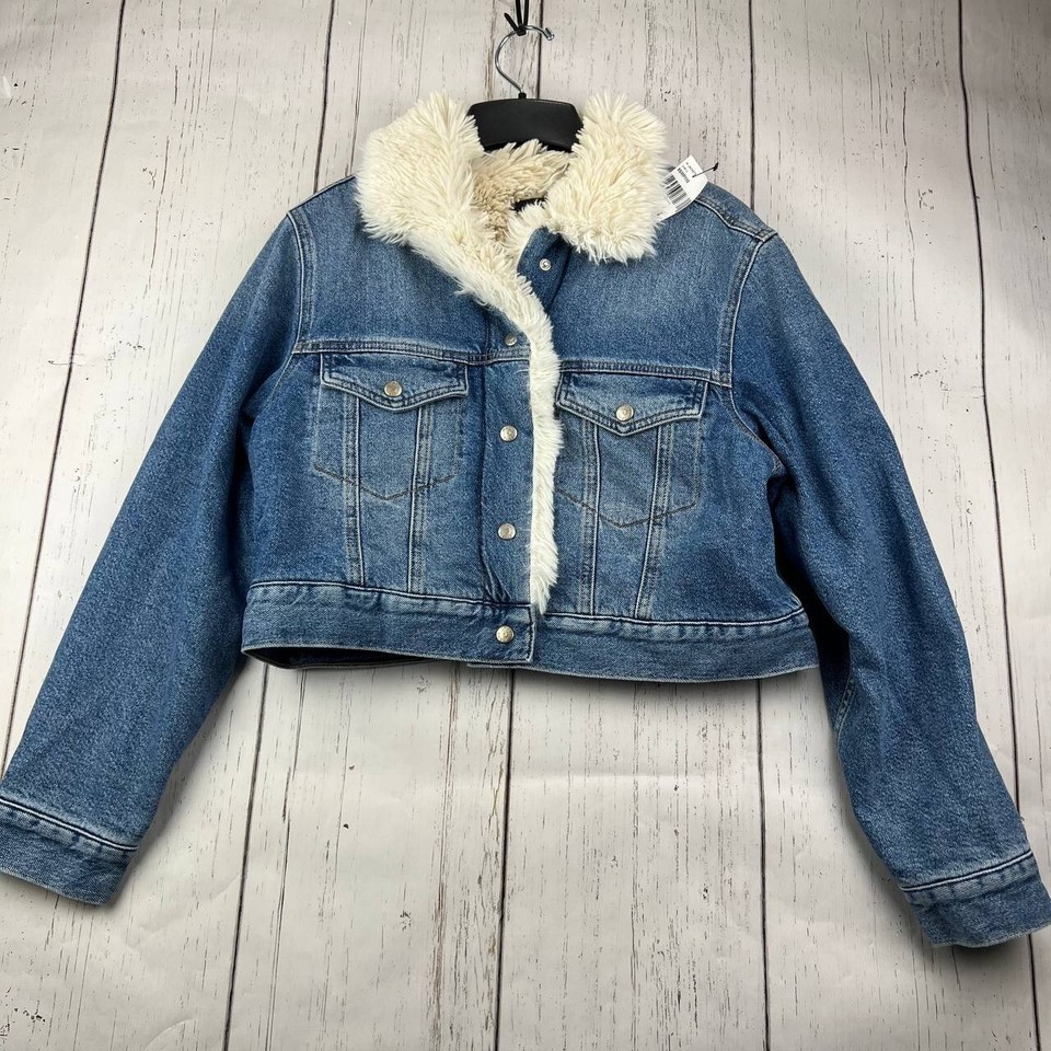 Mavi Small Cropped Fit Stretchable Fur Denim Jeans Jacket Blue Women New