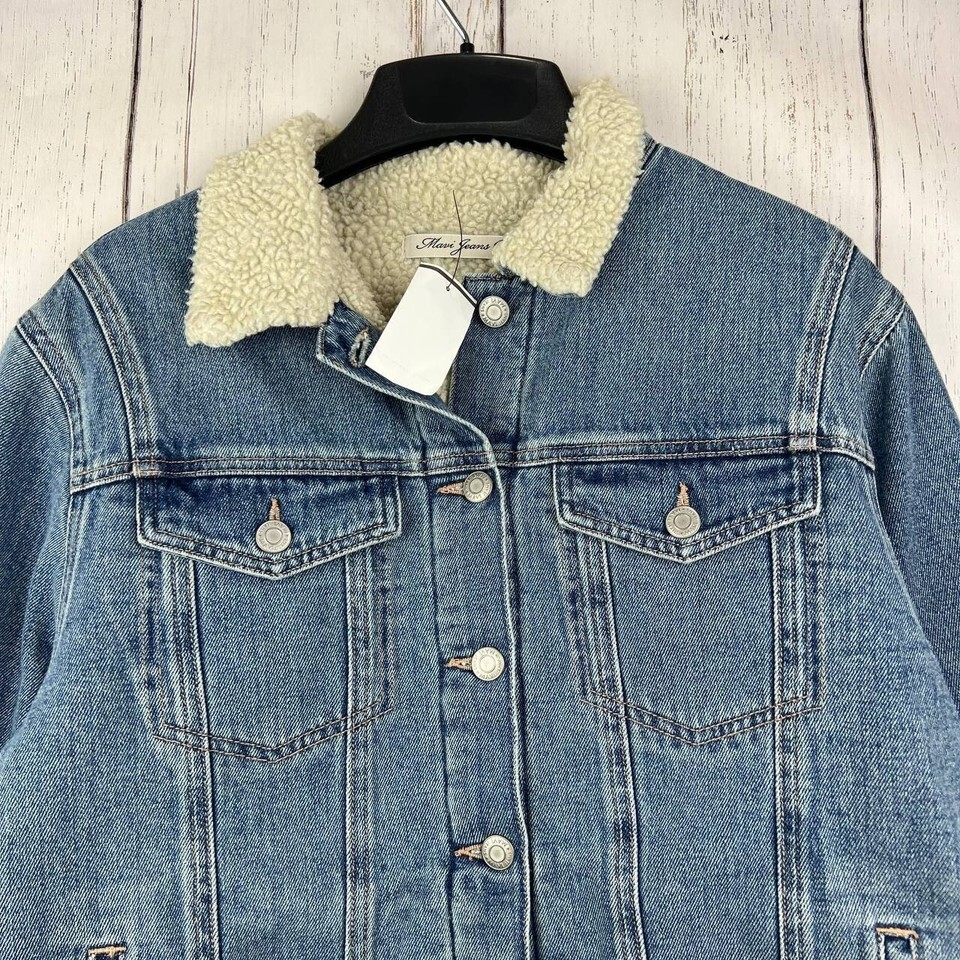 Mavi Small Classic Fit Stretchable Denim Faux Fur Sherpa Jacket Women New