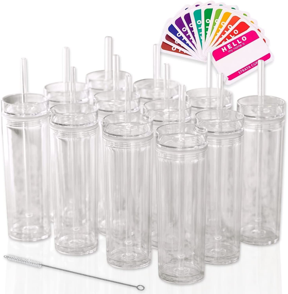 12-Pack 16oz Clear Skinny Tumblers with Lid and Straw: Double Wall Acrylic Cups