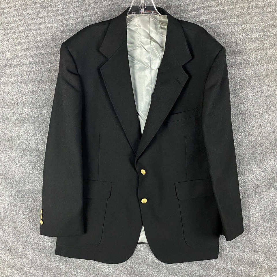 Vintage Stafford Blazer Men's 44S Jacket Black Polyester Wool Formal 2 Buttons