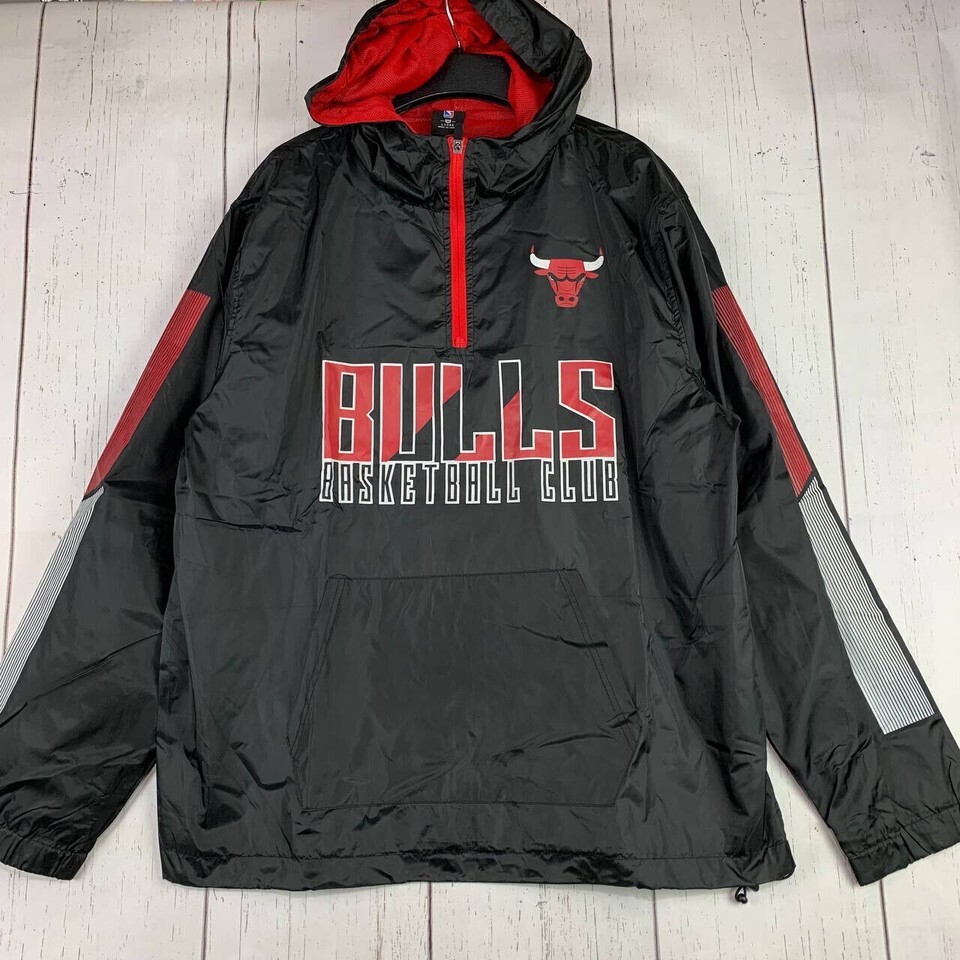 Chicago Bulls Basketball Club NBA Large Black 1/4 Zip Windbreaker Jacket New Men