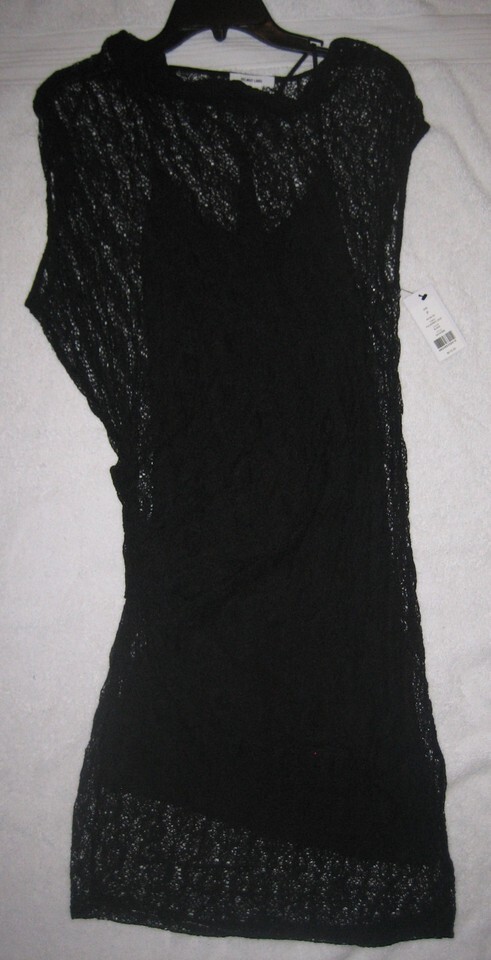 NWT Helmut Lang Slip Dress Black Puckered Lace Overlay Asymmetrical Draped P XS
