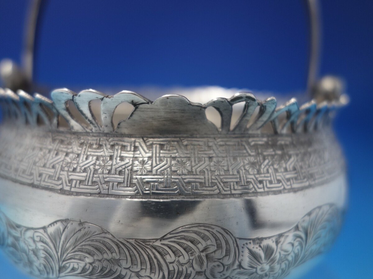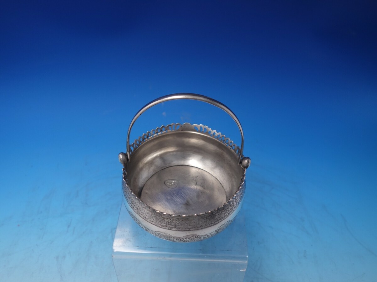 Middle Eastern Sterling Silver Bowl Basket with Swing Handle Hand Engraved #6498