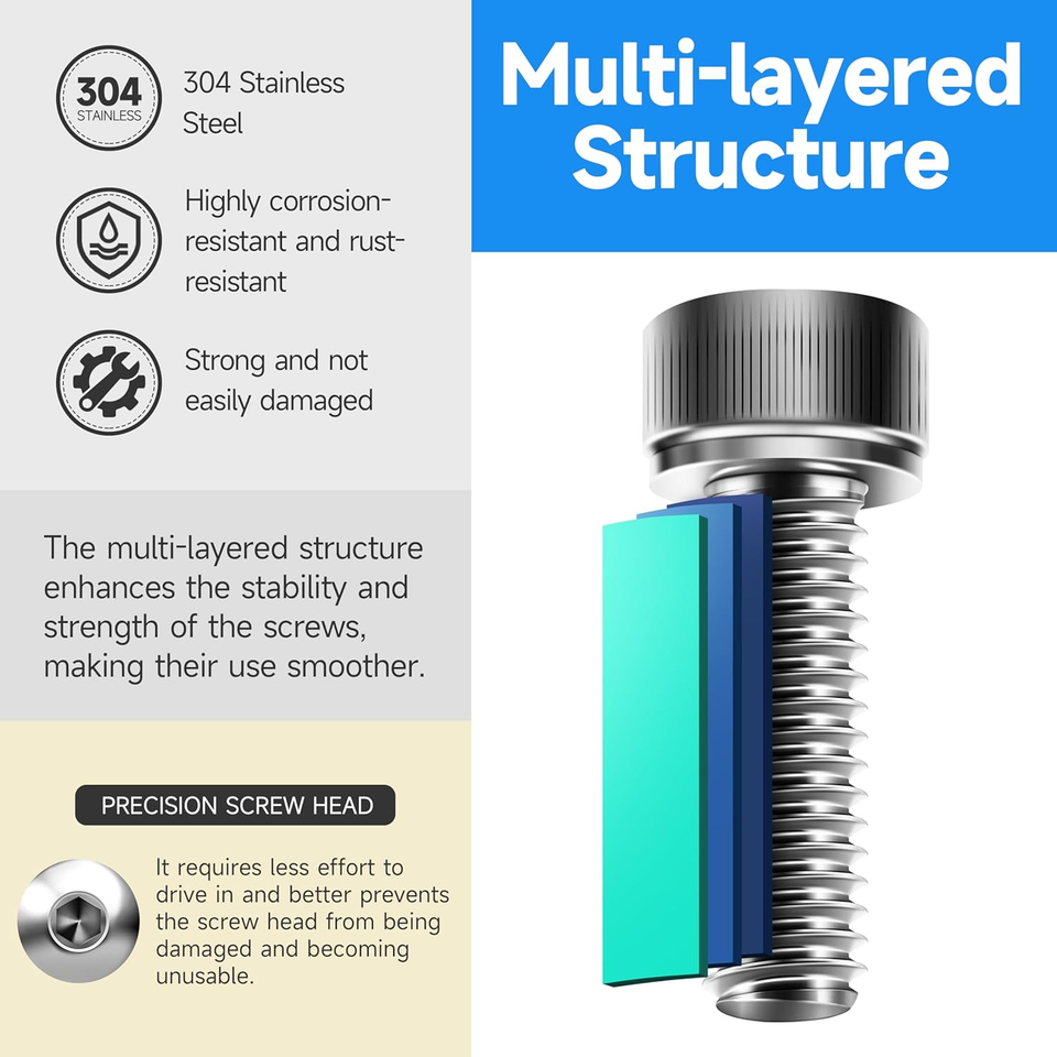 900Pcs M3-M6 SS Hex Socket Cap Screw Kit Bolts Nuts Washers 3D Printer