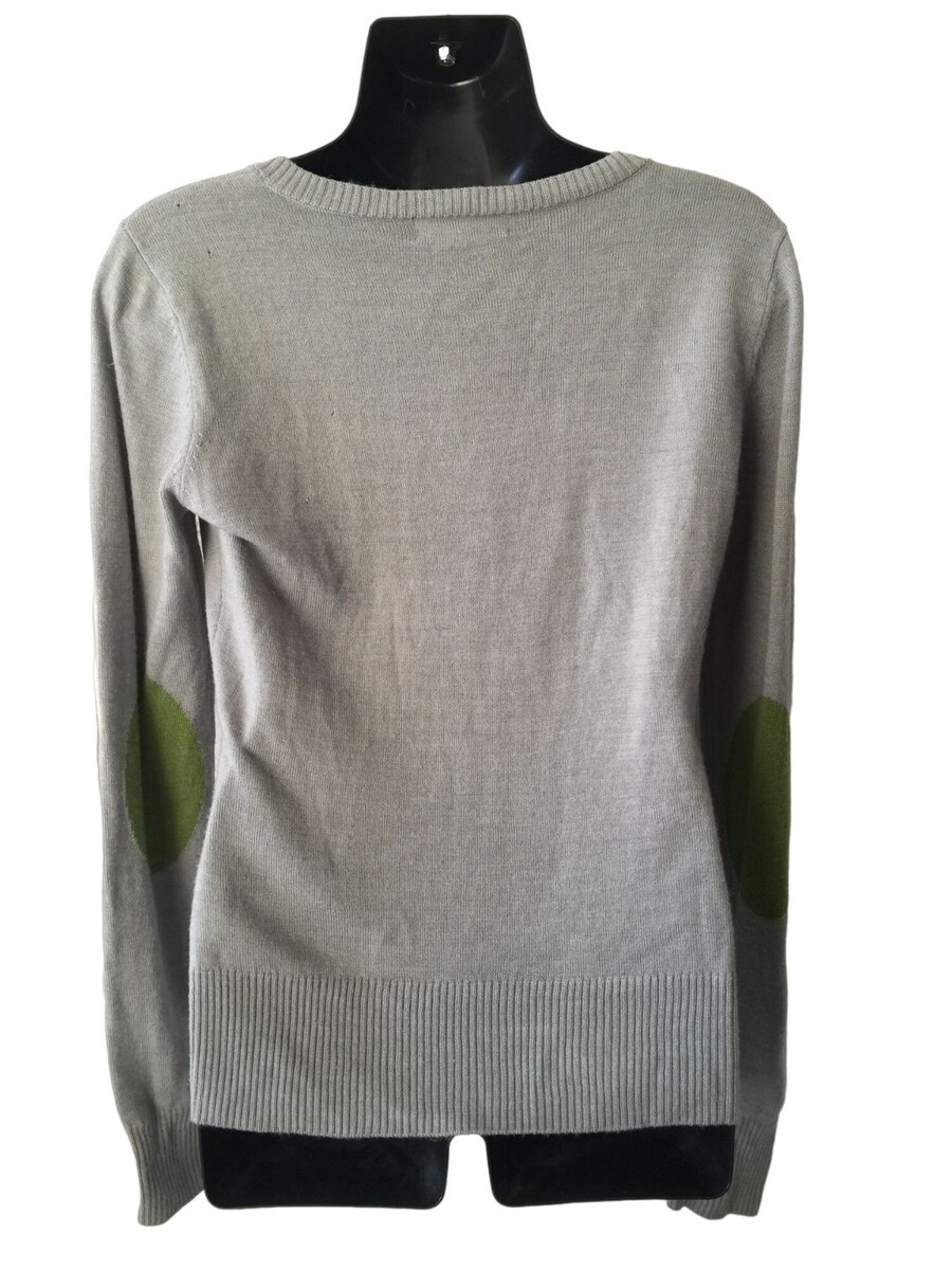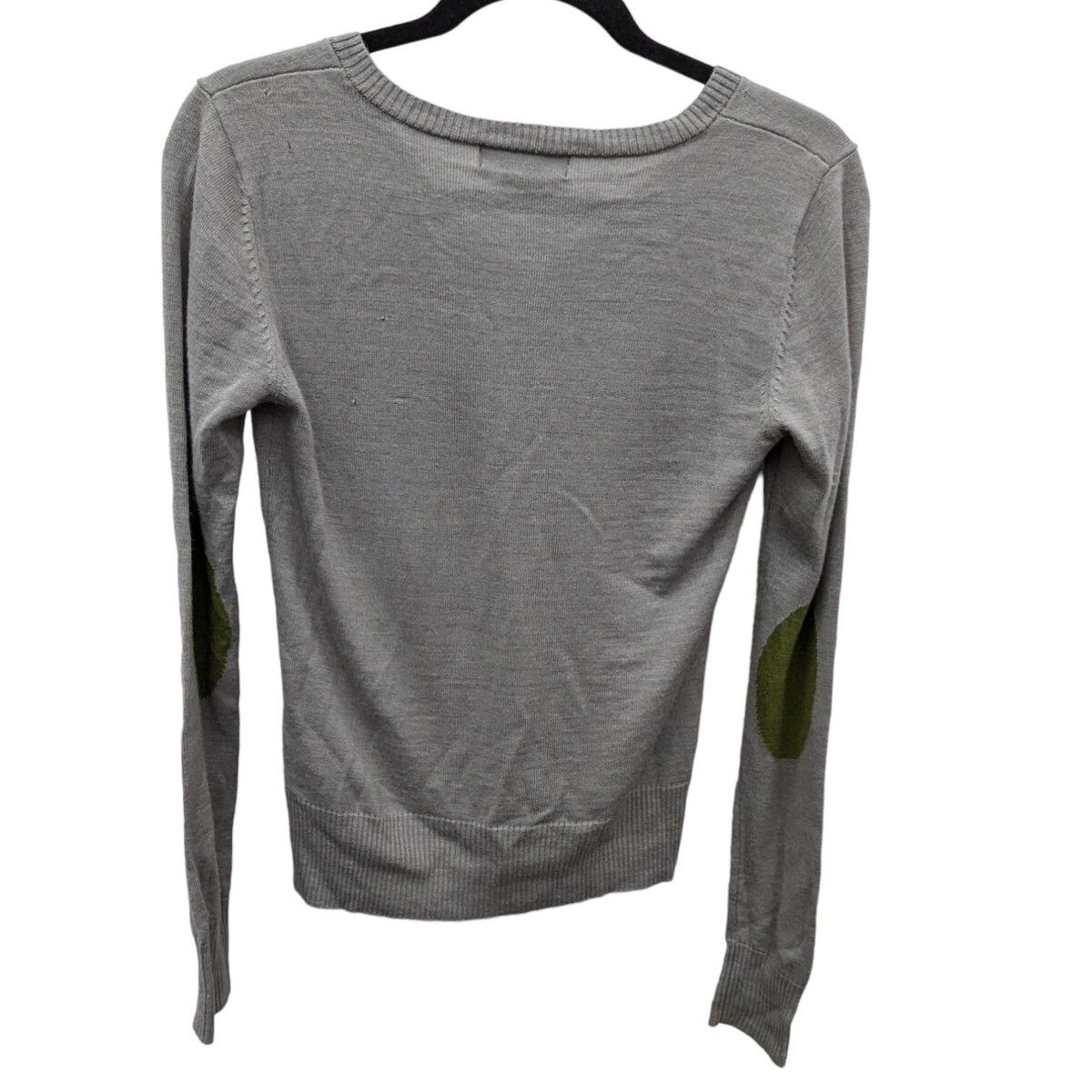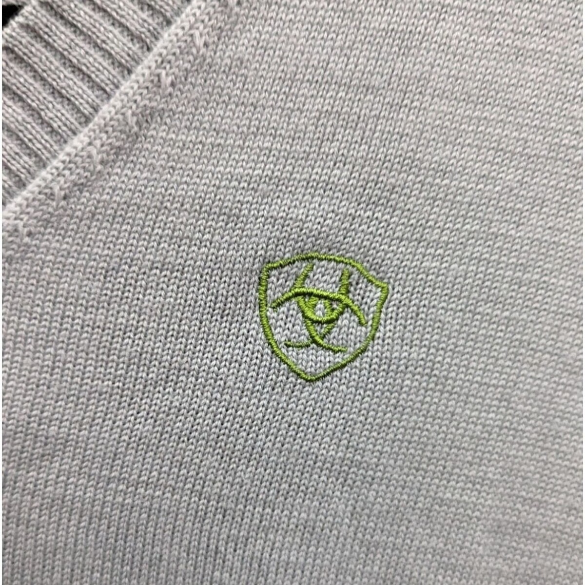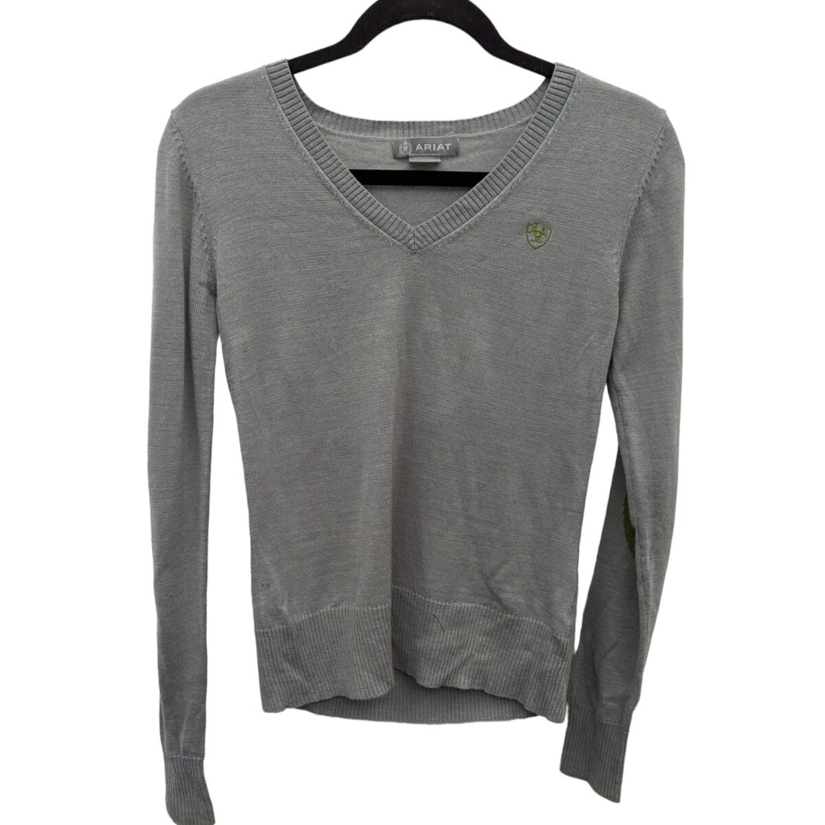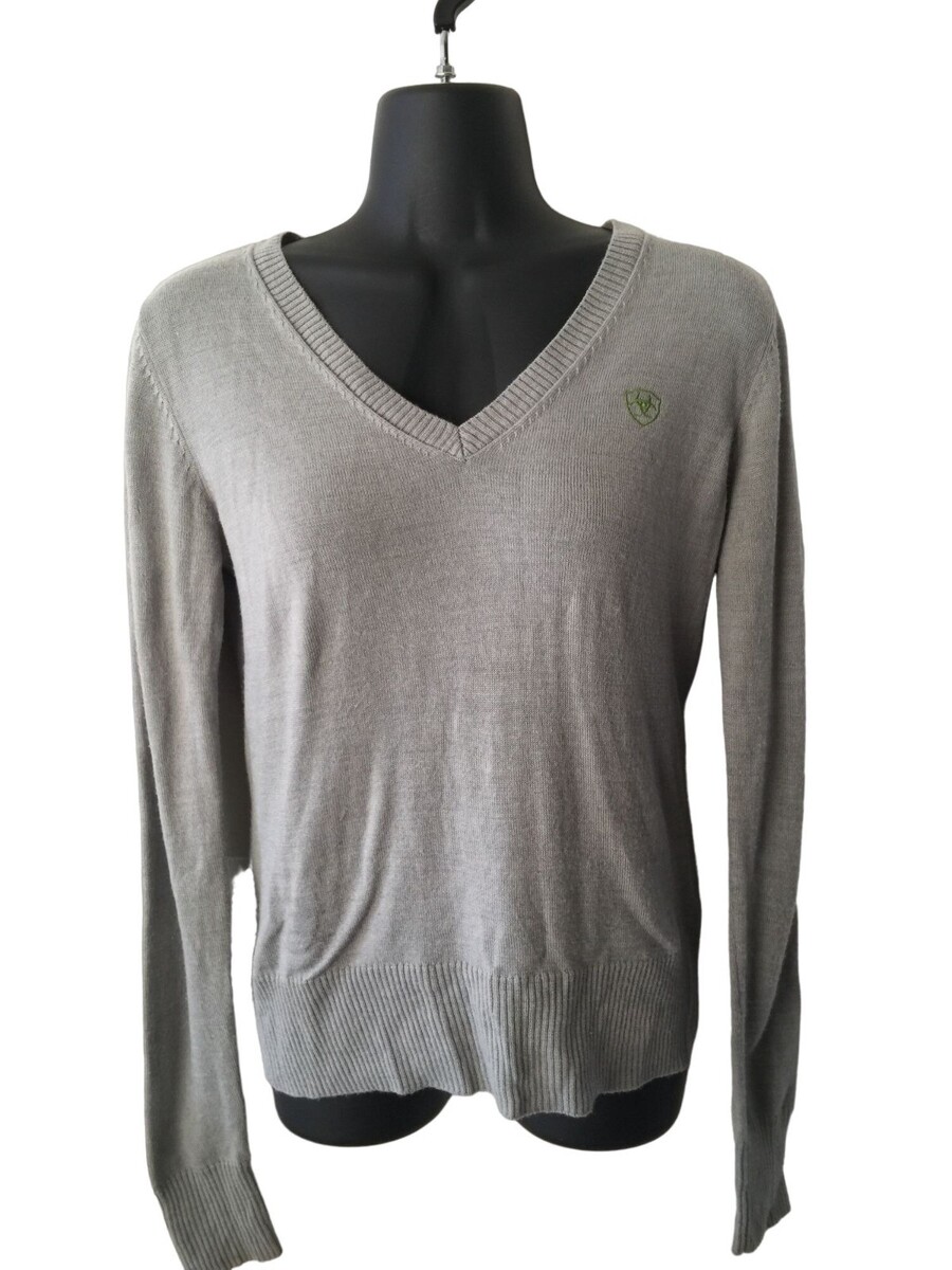 Ariat Womens V-Neck Long Sleeve Ribbed Knit Elbow Patch Pullover Sweater Grey L