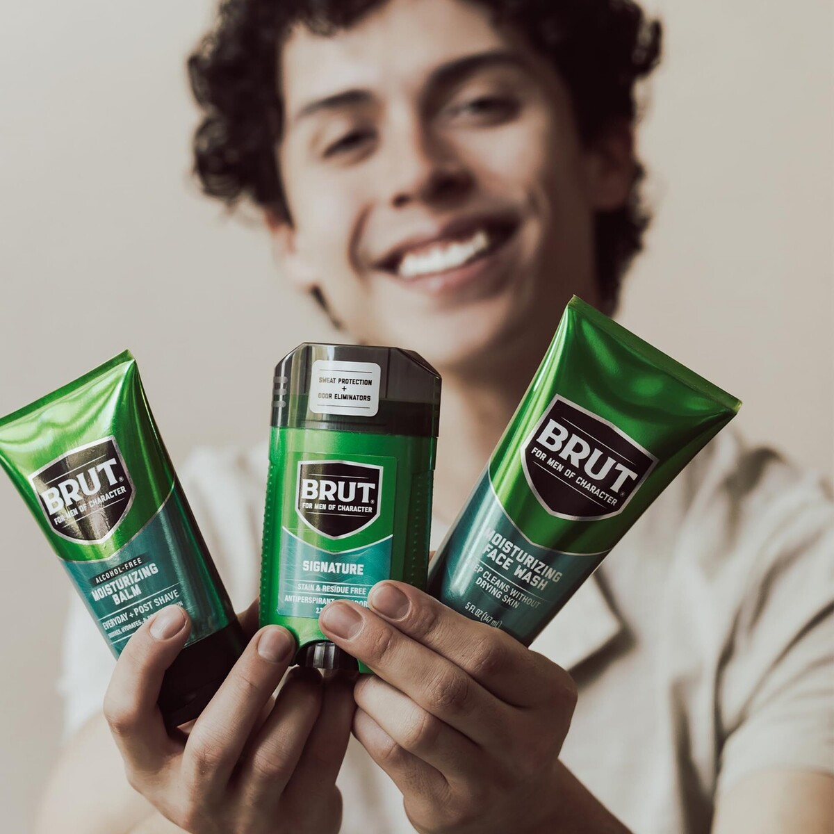 3 Pack ? MOISTURIZING FACE WASH. This hydrating, pore-cleansing formula deeply clarifies the skin, while conditioning facial hair before shaving for a smooth, comfortable shave. ? HYDRATED SKIN. This men's skin care product removes dirt and oil trapped deep in the pores, without stripping the skin of essential moisture. The result is a freshly cleansed face that doesn't feel dry or tight. ? PRE-SHAVE CONDITIONER. Our moisturizing face wash is designed to condition facial hair before shaving, softening hair and skin to simplify the shaving process and leave skin hydrated. ? LIGHT, SIGNATURE FRAGRANCE. This hydrating pre-shave face wash is lightly fragranced with BRUT's Signature scent, a blend of fougere, wood, citrus, vetiver, and lavender notes. ? CHAMPION YOUR INDIVIDUALITY. Like the men who wear it, BRUT embodies confidence through the power of fragrance. More than a part of your daily routine, it?s designed to leave an impression.