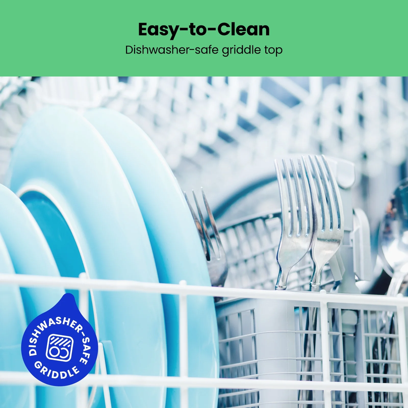 The griddle grill cook top is fully immersible and dishwasher saf |