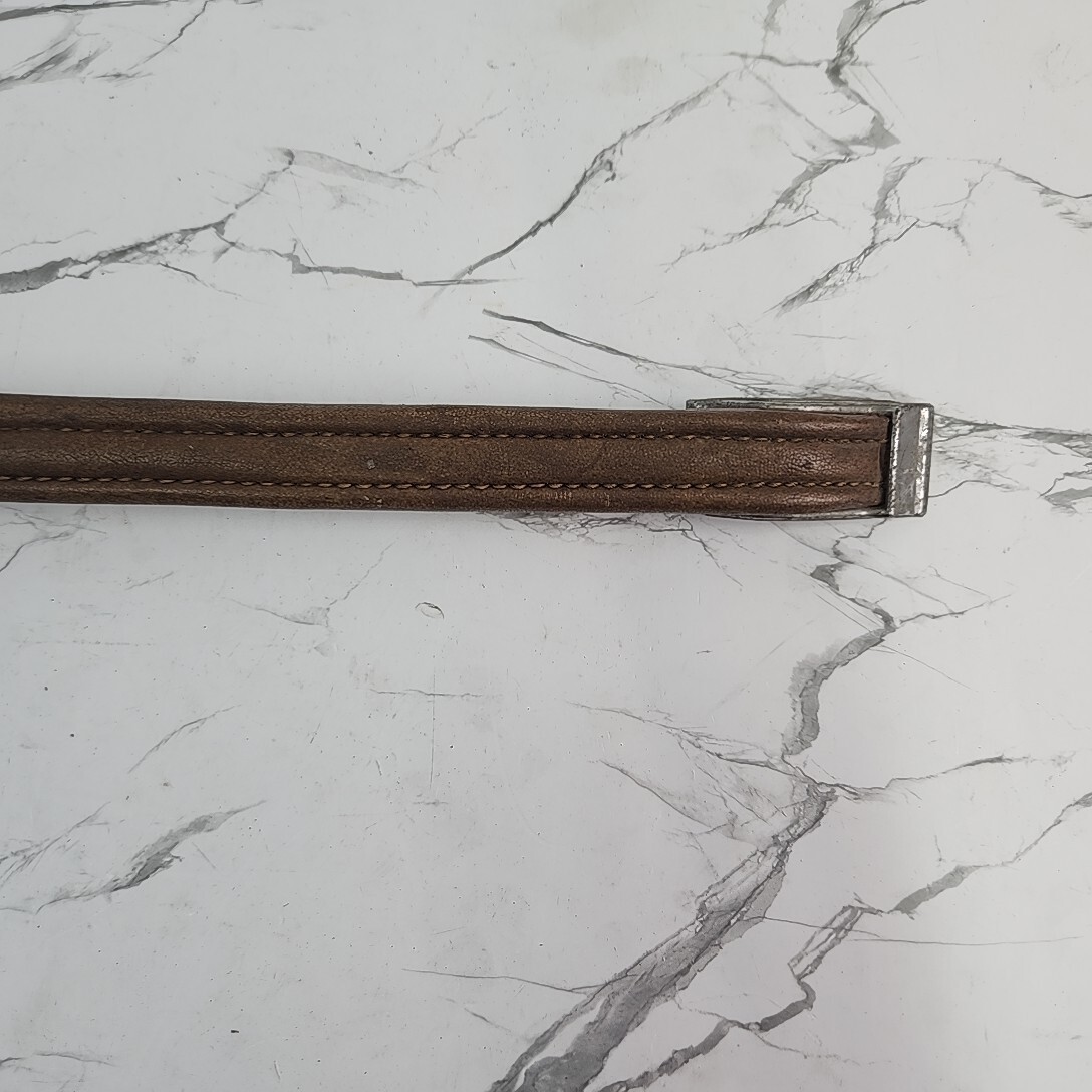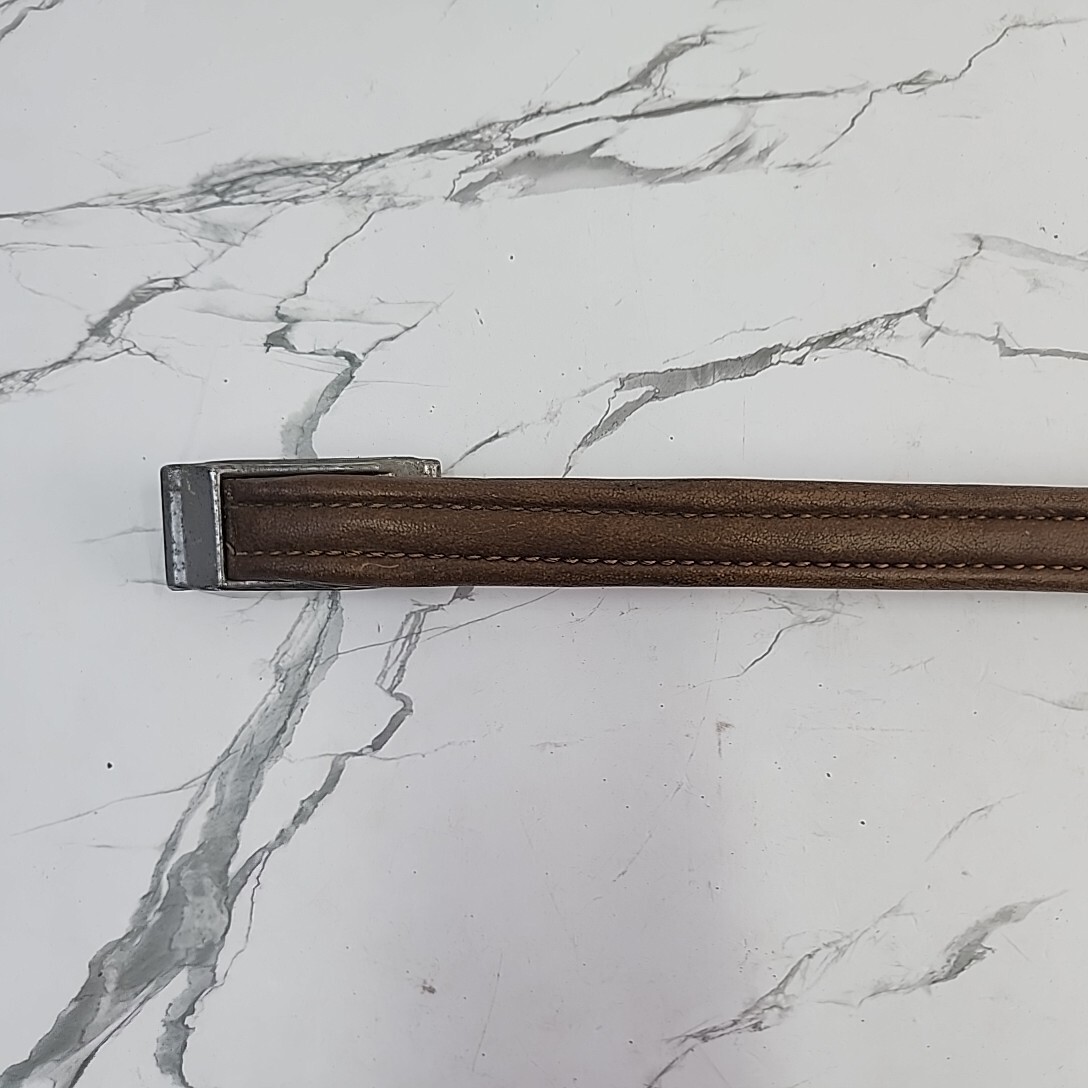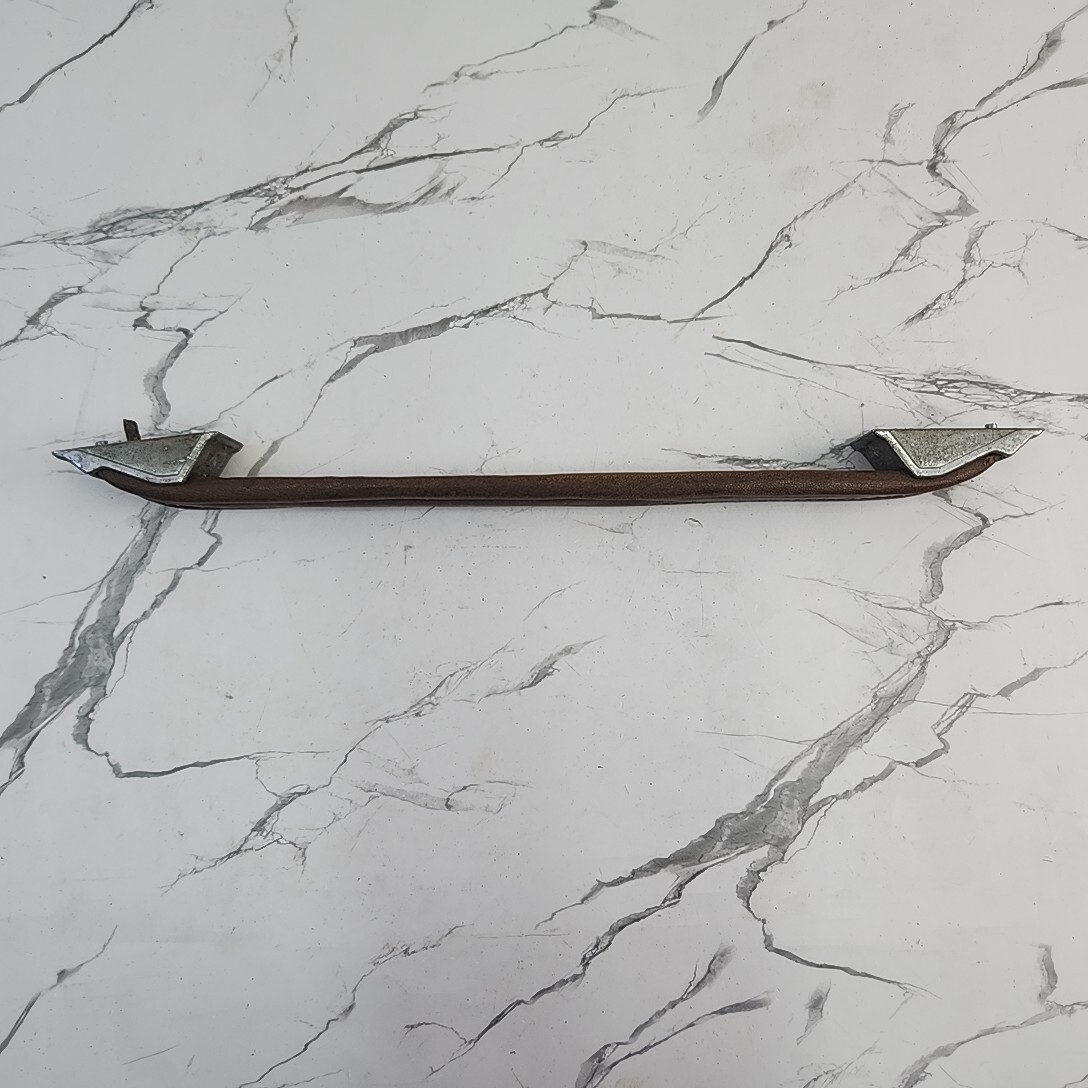 Exact item is shown. Vintage used item. Chrome ends have minor pitting. Brown material is intact but has discolored spots. For left or right side. Overall length 15.5 inches. Made in USA.