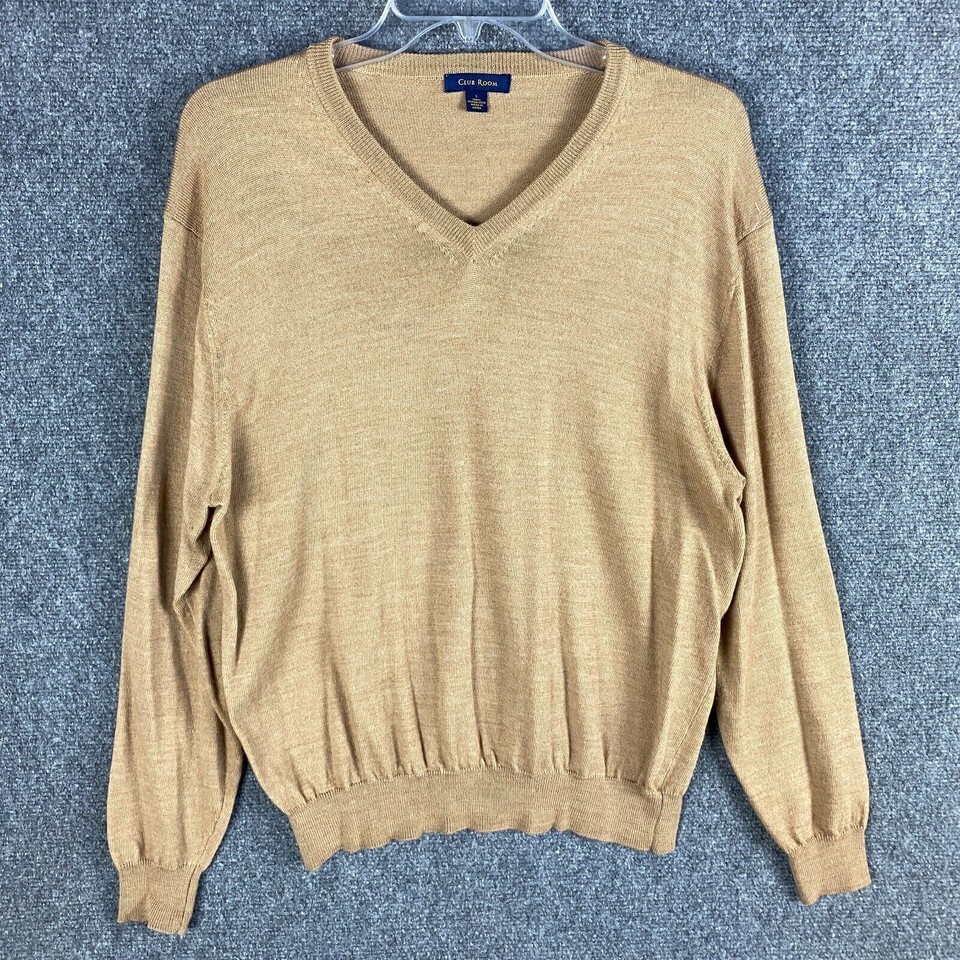 Club Room Merino Wool Sweater Men's Large Pullover Beige Adults L