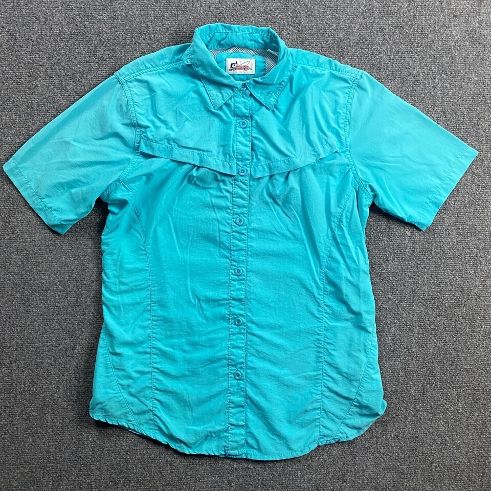 World Wide Sportsman Fishing Shirt Women's Medium Blue Button Down Vented Nylon