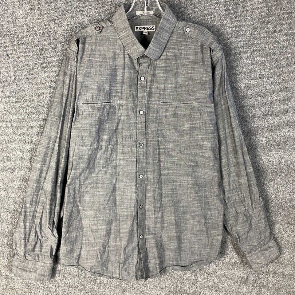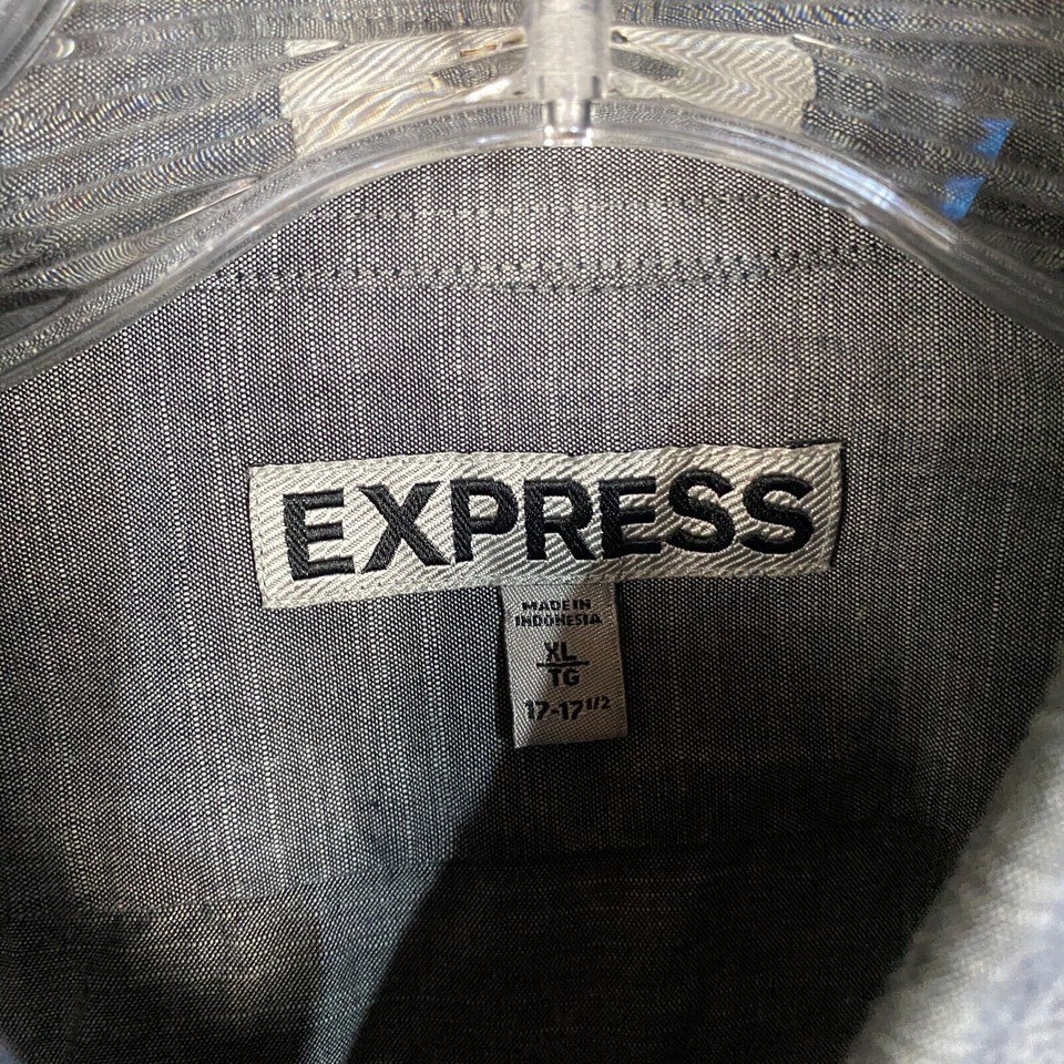 Express Button Up Shirt Men's XL Fitted 17-17.5 Long Sleeve Gray Adults Cotton
