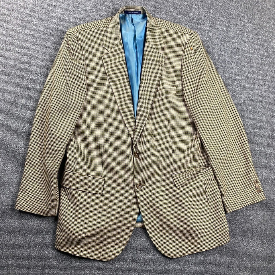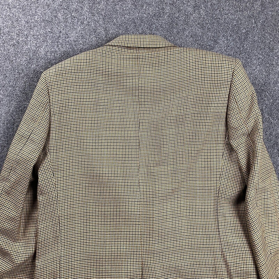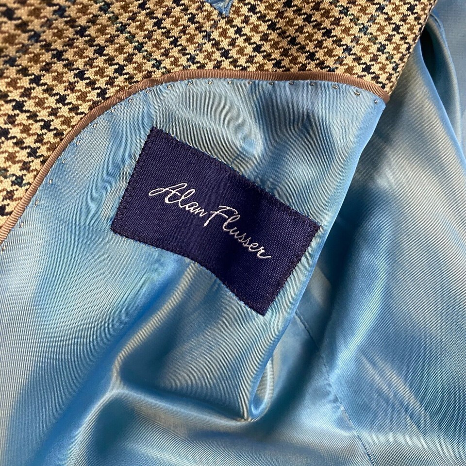 Alan Flusser Blazer Adults 44L Beige Houndstooth Silk Worsted Wool Jacket Mens