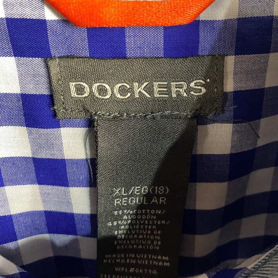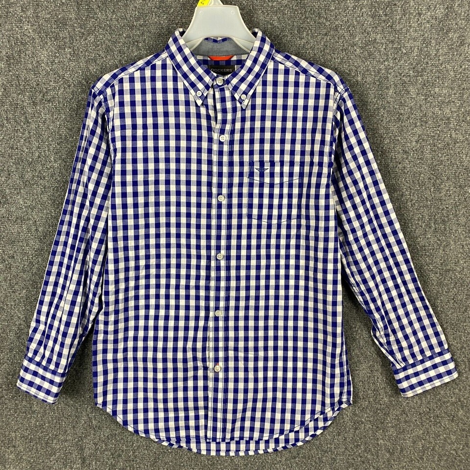 Dockers Button Down Shirt XL 18 Yrs Boys Long Sleeve Plaid Blue Cotton Blend