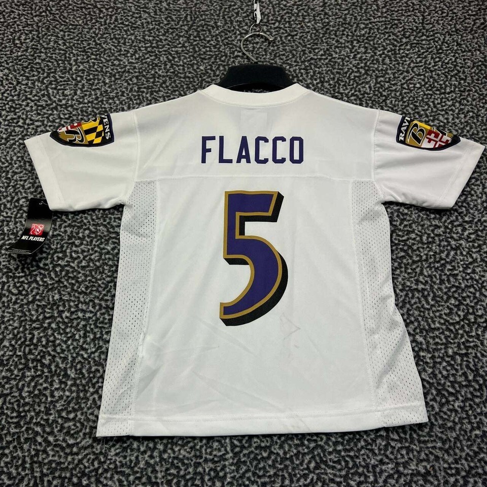 Baltimore Ravens Flacco #5 Jersey Shirt Youth Small 8 White NFL V-Neck New S