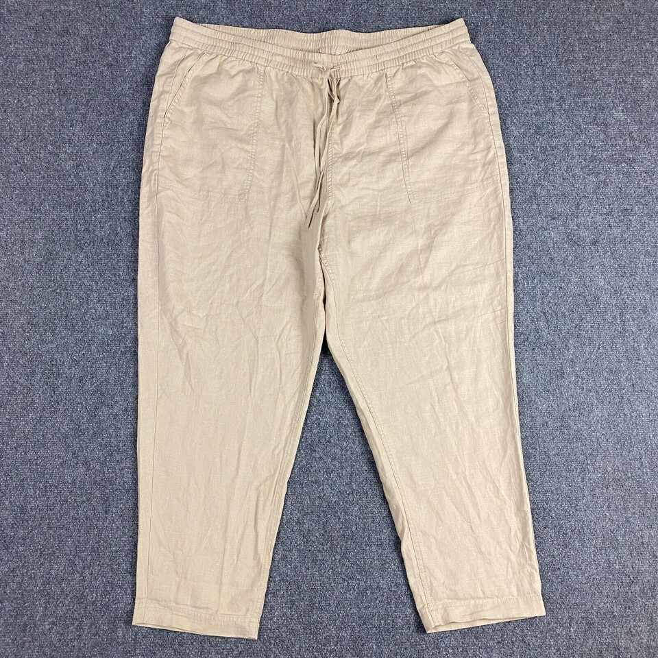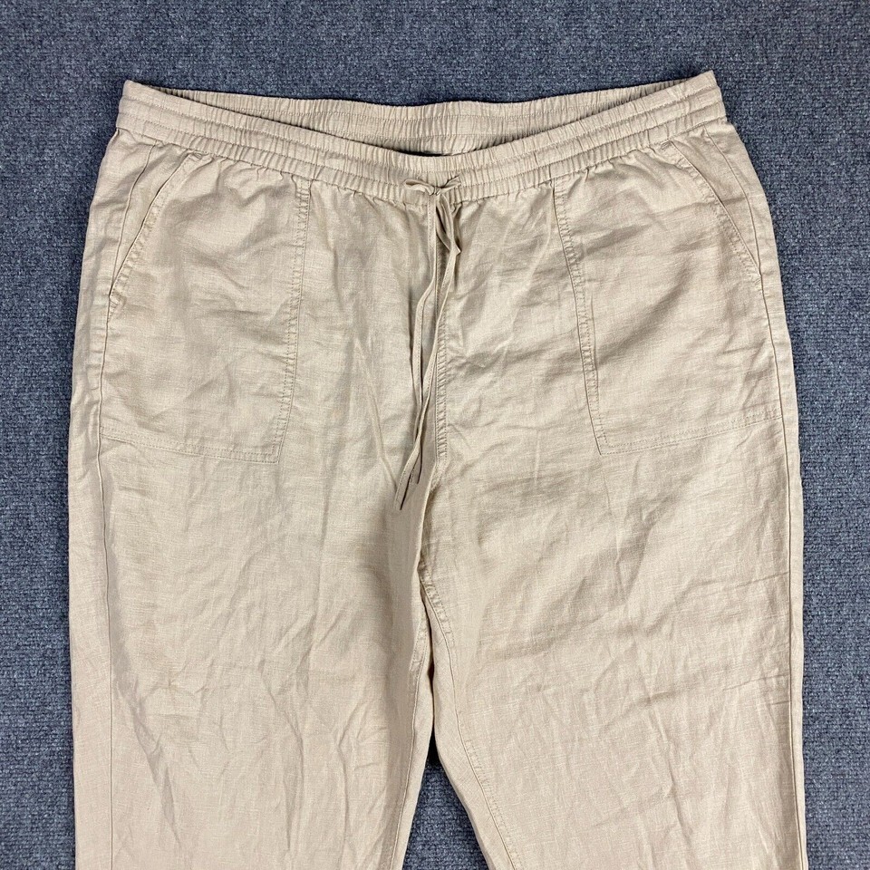 J Crew Pants Women's 2X Beige Jogger Taper Drawstring Linen Blend NWT