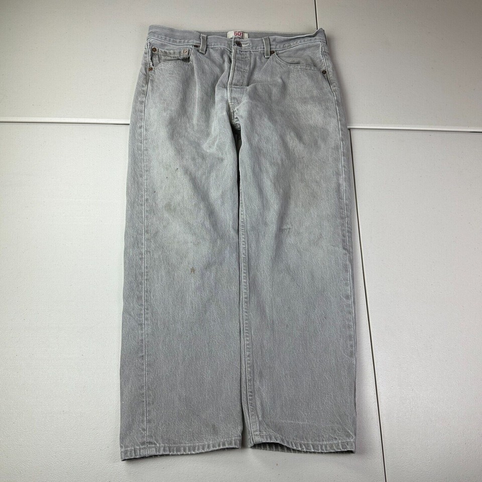 Levis 501 Mens Jeans 36x30 Light Gray Denim Straight Leg Button Fly (34x27)