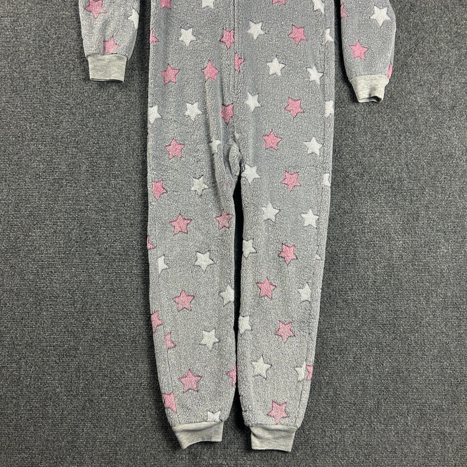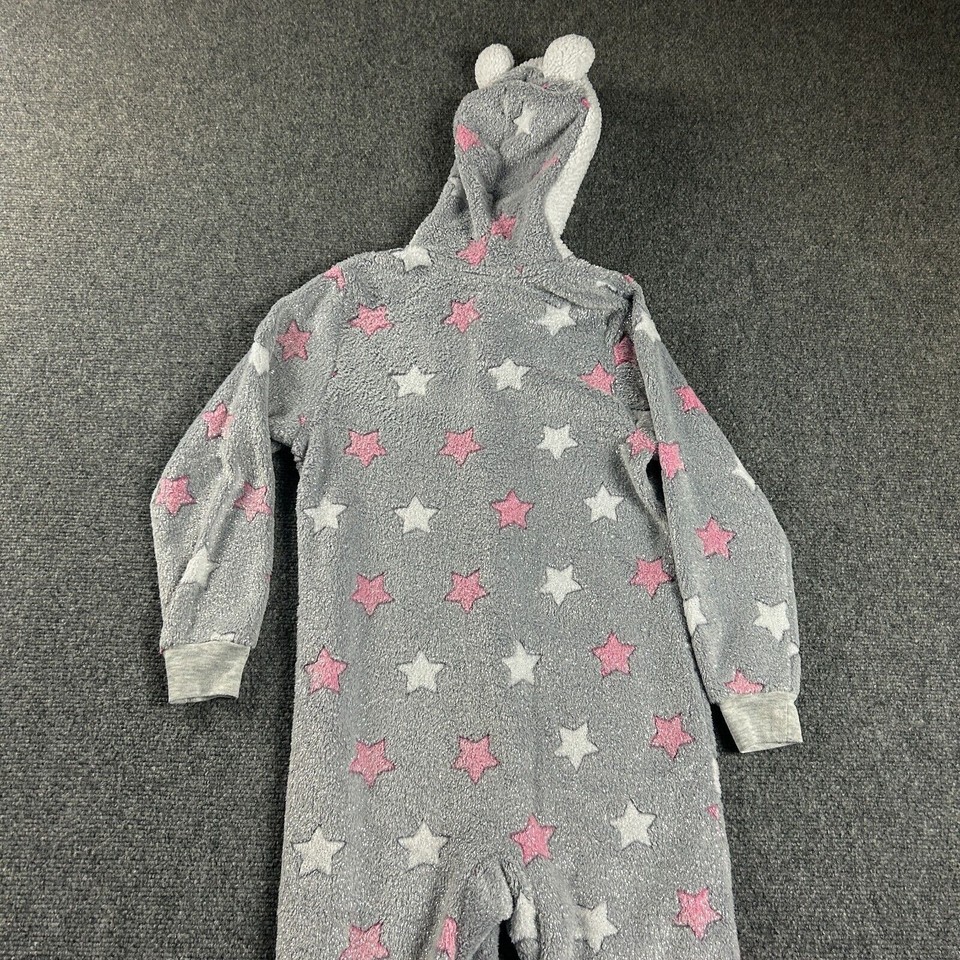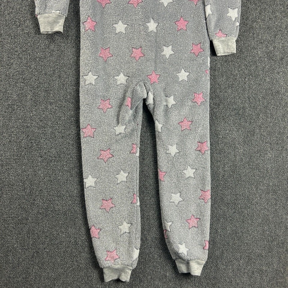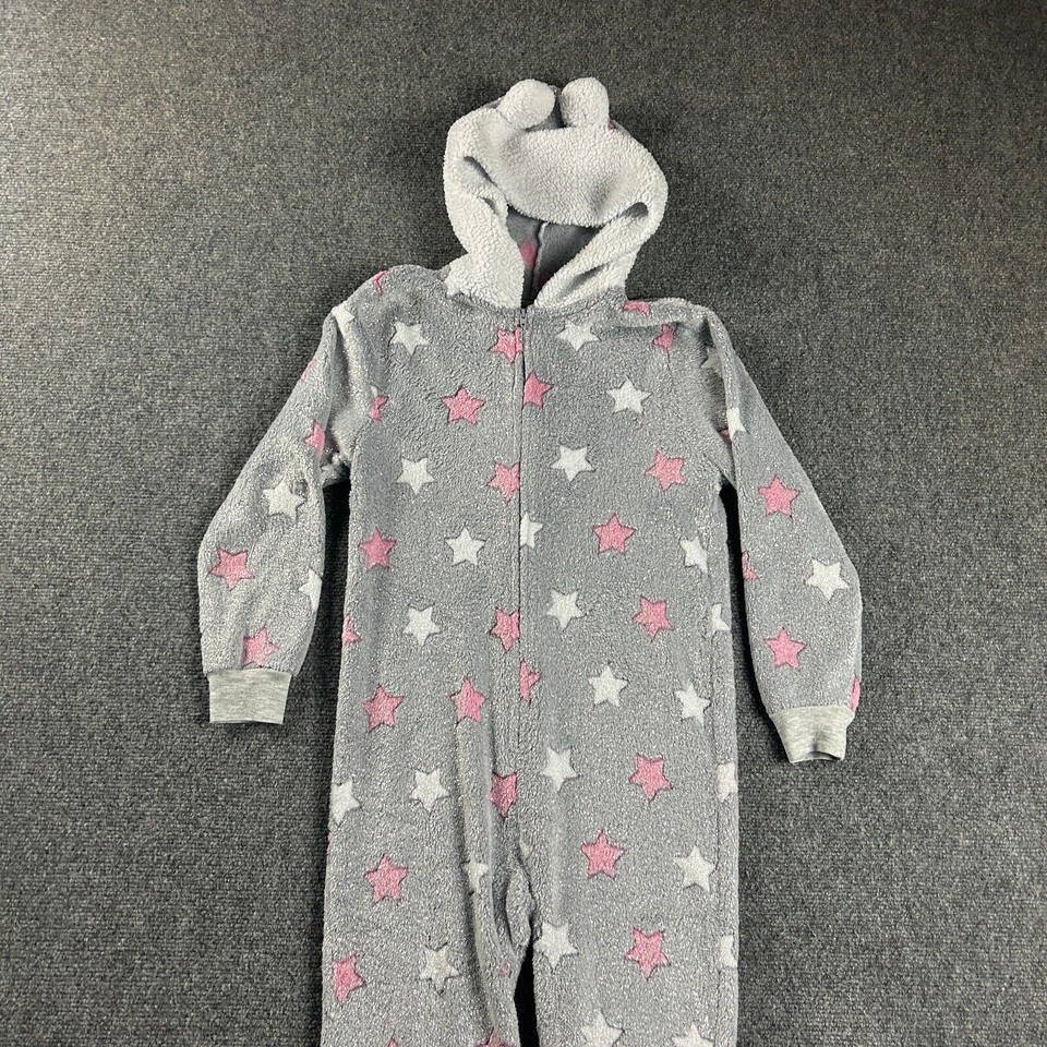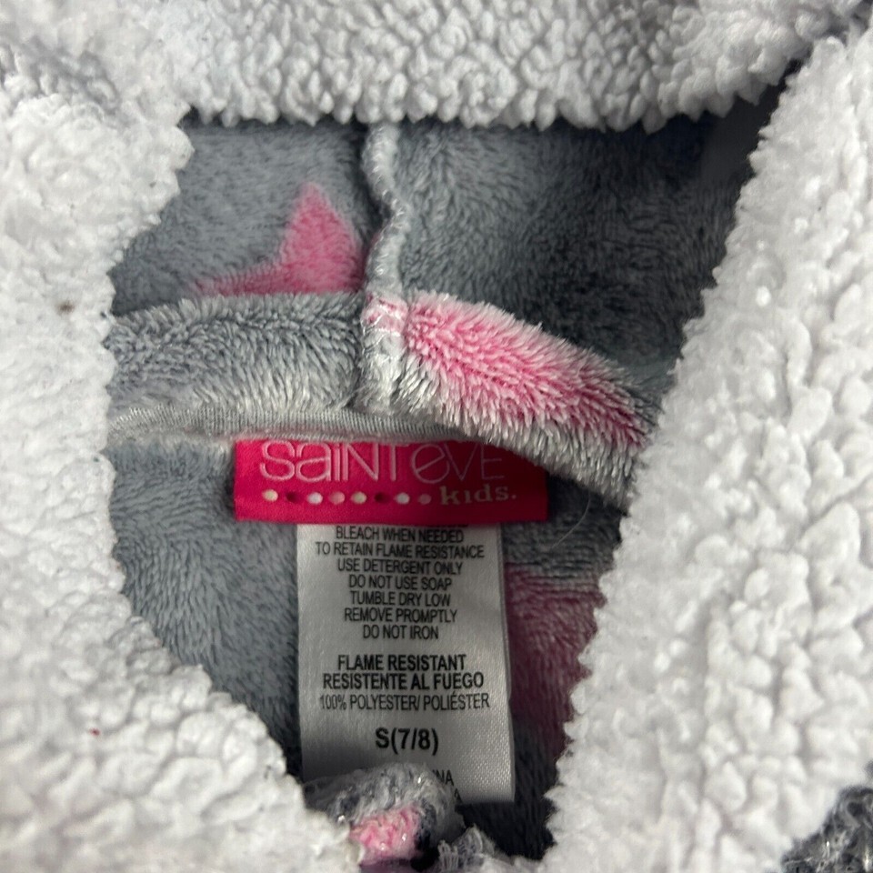 Saint Eve Pajama Girls Small 7/8 One Piece Zip Stars Gray Sherpa Hooded Kids
