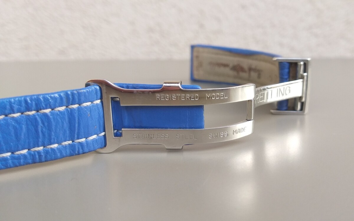 Breitling 20mm Blue Sharkskin Straps with Deployment