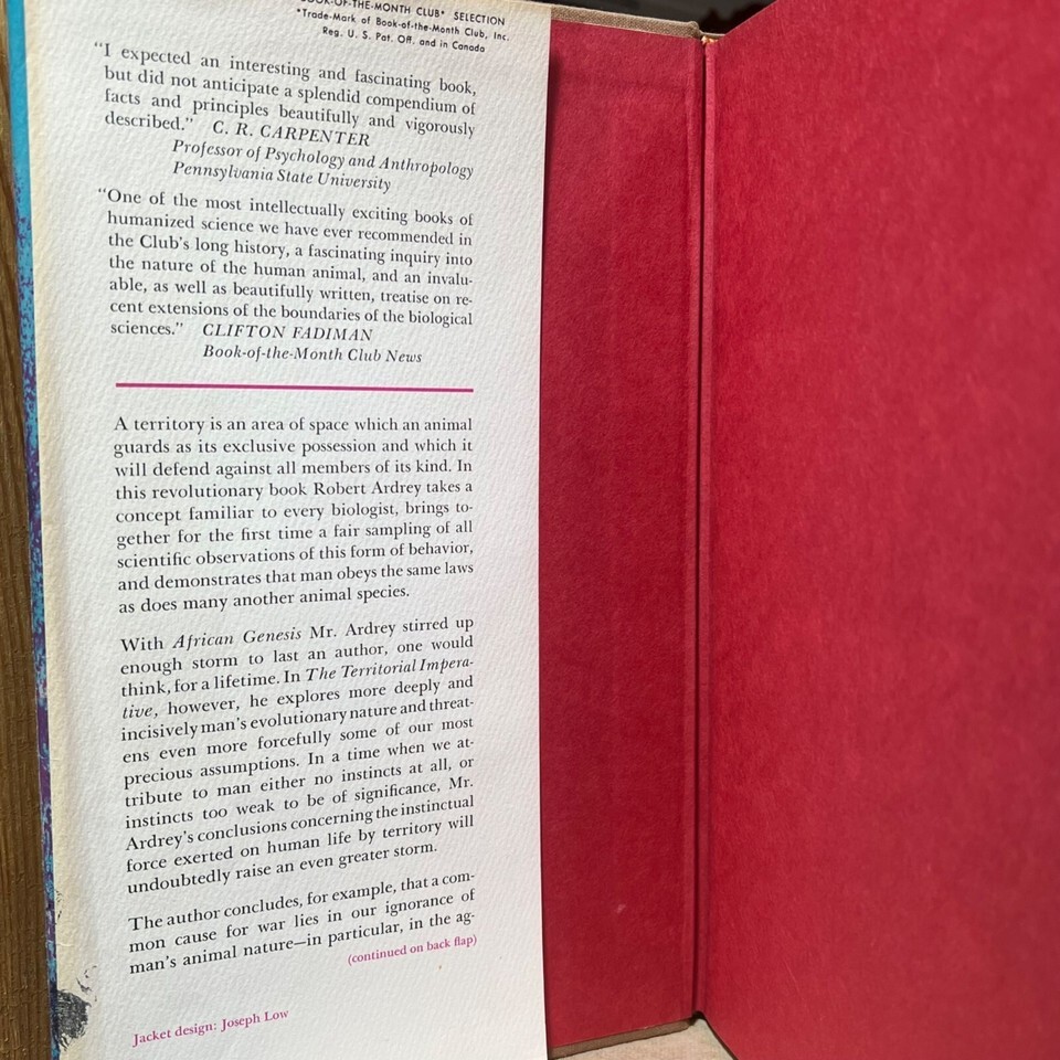 The Territorial Imperative Hardcover By Robert Ardrey 1966 Atheneum Edition