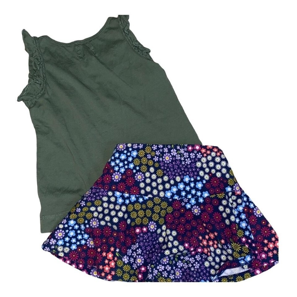 Peek Girls Green Ruffle Tank & Lands End Floral Skort Set Size 4-5/5-6