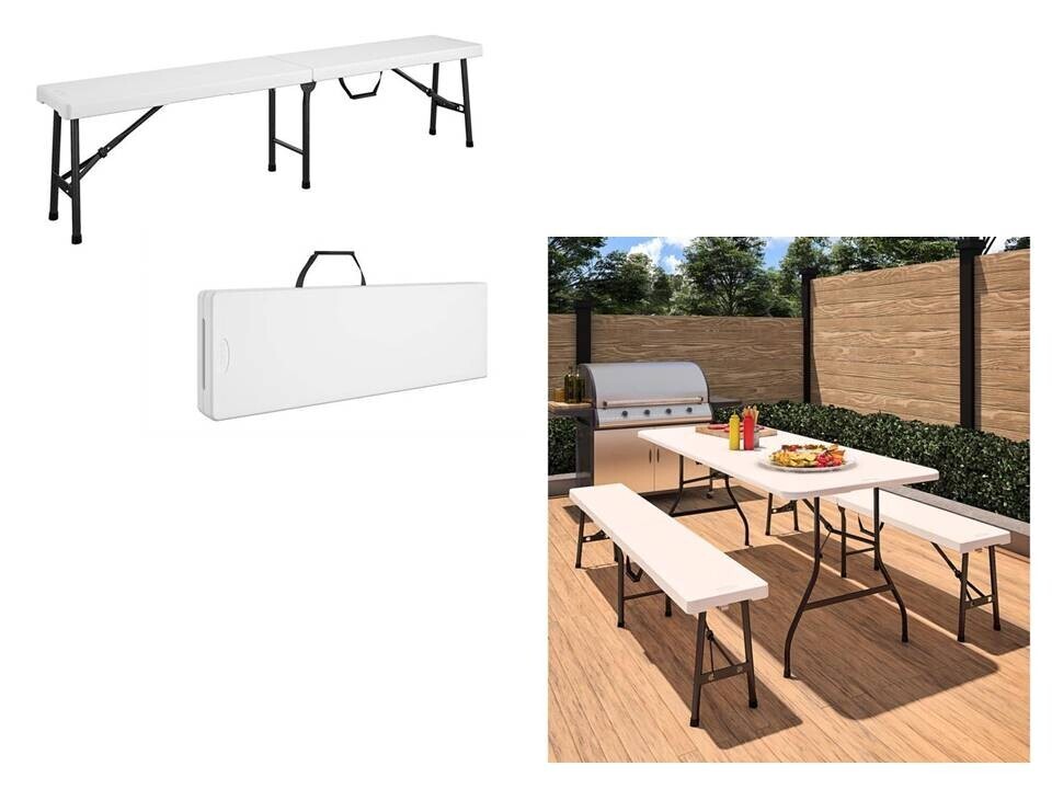 This folding bench is used by homeowners, event hosts, and families needing flexible, durable seating for dynamic living spaces. It?s commonly deployed during holiday dinners, backyard cookouts, garage sales, or children?s parties?providing instant extra seating without permanent footprint. Indoors, it serves as overflow seating in basements, sunrooms, or entryways; outdoors, it pairs with patio tables or picnic setups. Its fold-flat design makes it ideal for storage in small apartments, RVs, or seasonal homes, while the 500-pound capacity ensures stability for adults and children alike. Combining practicality with clean aesthetics, it offers a reliable, no-fuss solution for everyday use and special occasions alike.