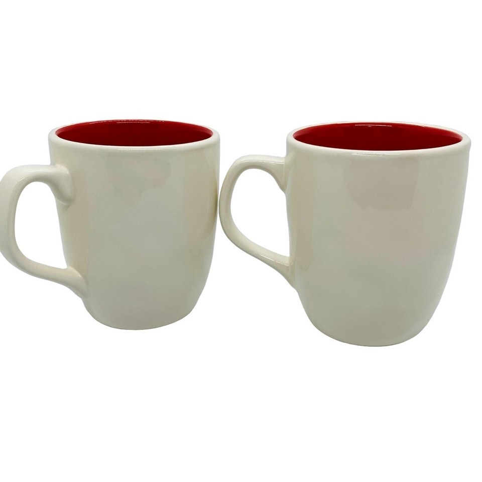 Rae Dunn "Merry" & "Wish" Coffee Mugs Holiday Red Interior