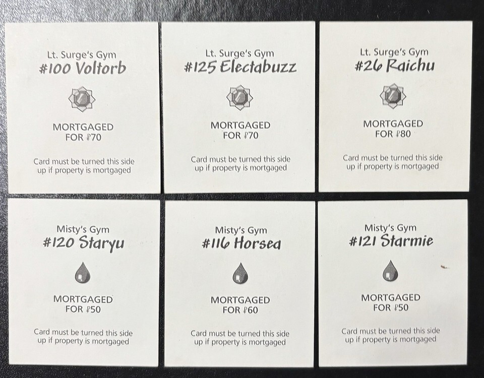 Pokemon Monopoly 1999 Collectors Edition Replacement Pieces: 6 Property Cards