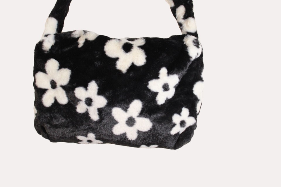 Women Handbag Unbranded Women Floral Fuzzy Shoulder Bag Black/White