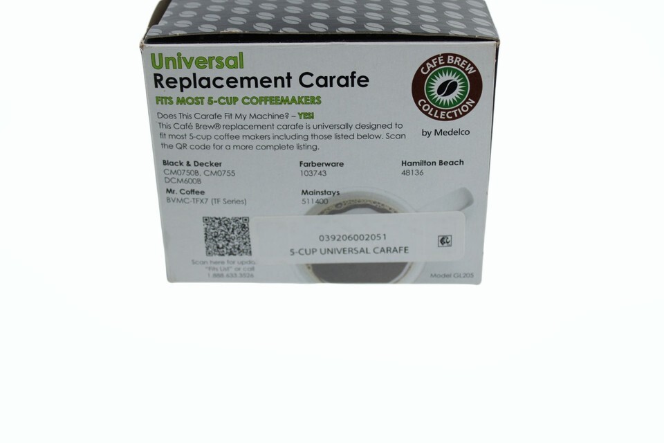 Medelco Universal Replacement Carafe 5 Cups Fits Most 5 Cup Coffeemakers