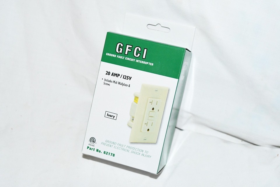 Ez-Flo 62178 20-AMP 125-Volt Duplex Self-Test Slim GFCI outlet ivory New 516c