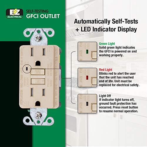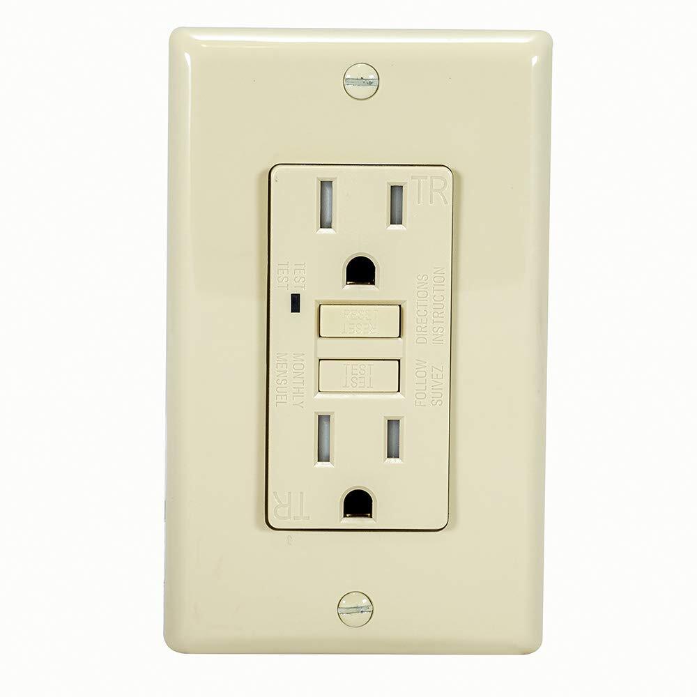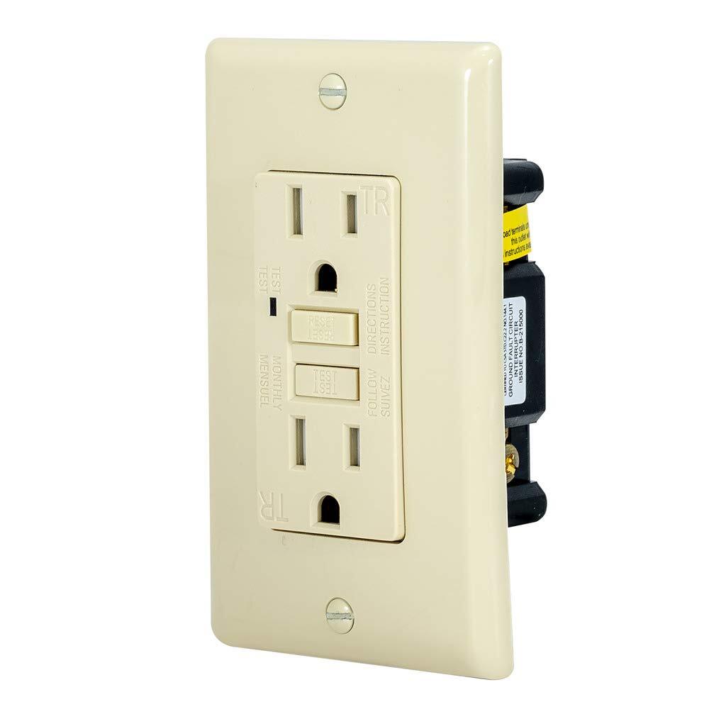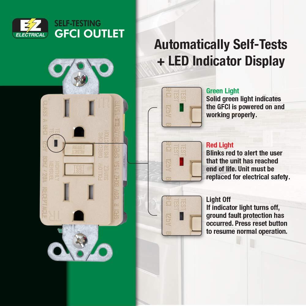 EZ-FLO 62174 Tamper Resistant 15 Amp 125 Volt Self-Test Slim GFCI Outlet with LE