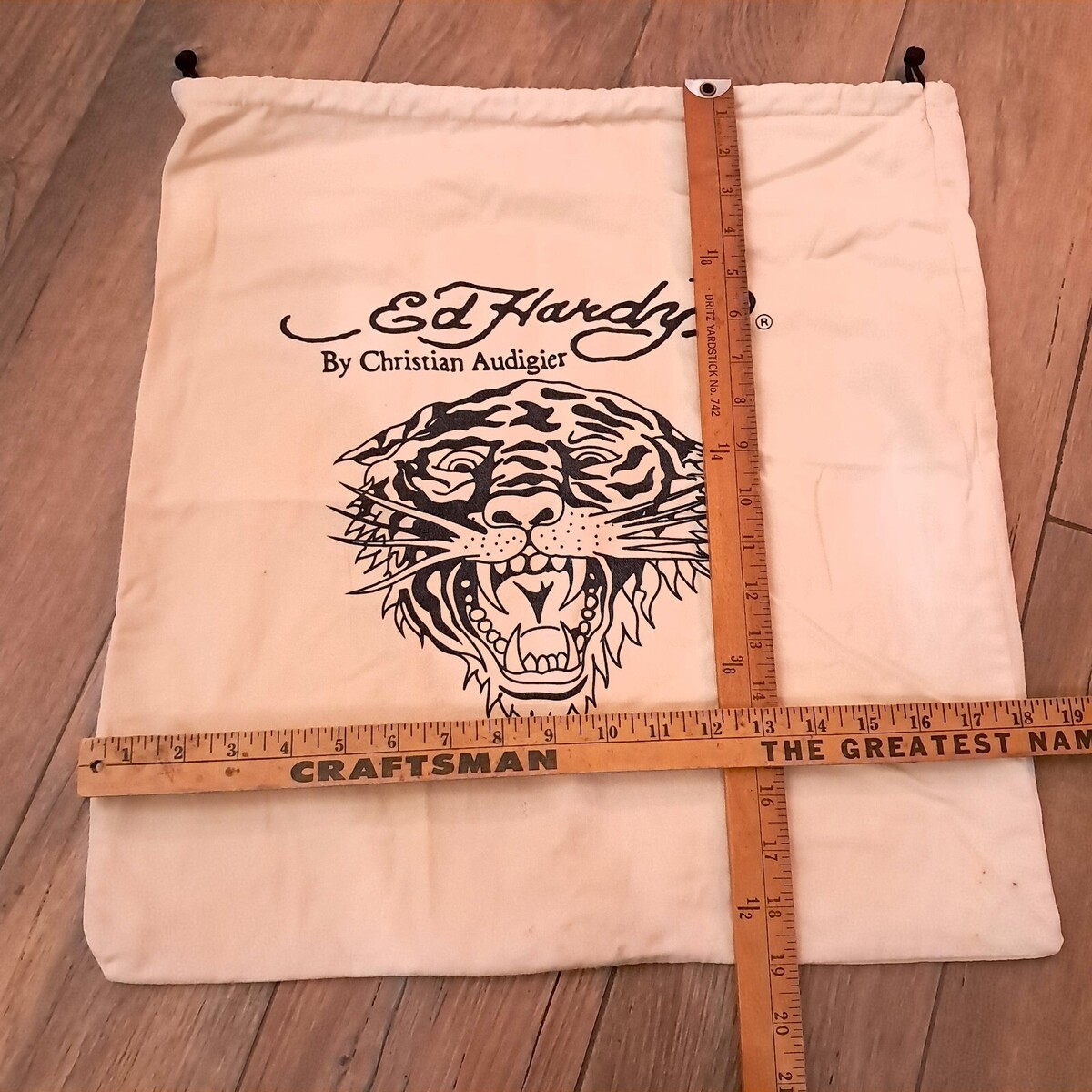 Ed Hardy Tiger Drawstring Bag Dust Cover pouch travel canvas tote cream black