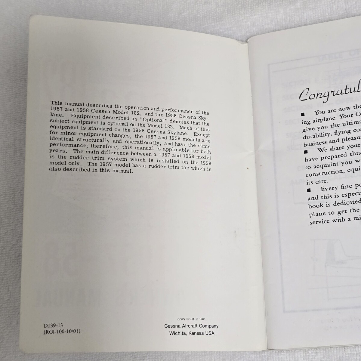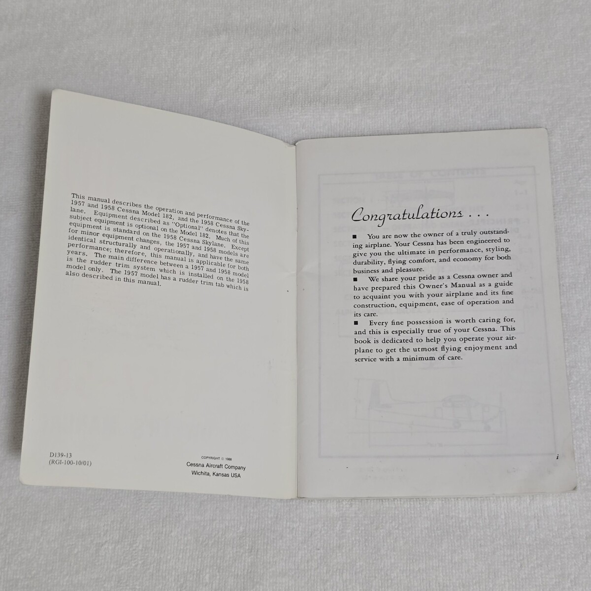 Nice pre-owned Condition Vintage 1957-58 Cessna 182 Owner's Manual